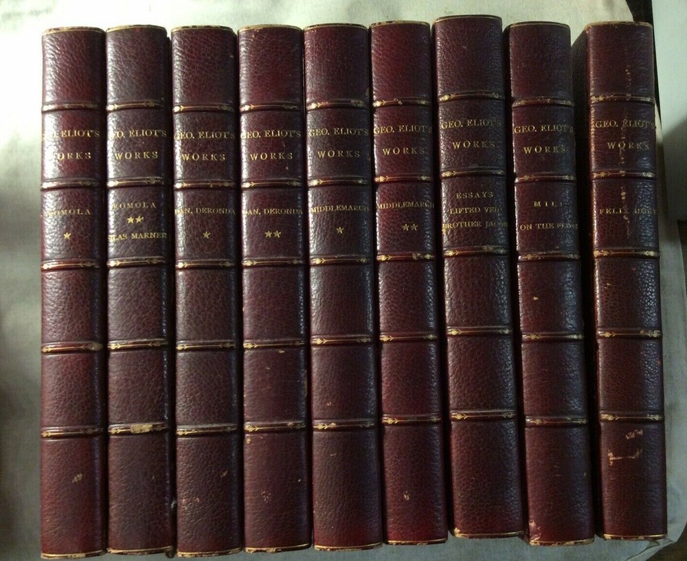 9 volume (incomplete) set c. 1900 of George Eliot's works. Includes: Felix Holt, Daniel Deronda (in two parts), The Mill on the Floss, Middlemarch (in two parts), Romola (in two parts), Essays and The Lifted Veil and Brother Jacob. Please contact with any questions or for more pictures. Shipping Disclaimer: Shipping costs are estimates. If you have a preference for shipping, please let us know and we will update the invoice accordingly. Please wait until we invoice you to pay, especially for international orders. We require insurance for your purchase. We are not liable for lost and stolen packages. Seller inventory: nov 2020 wire sprinkler 5