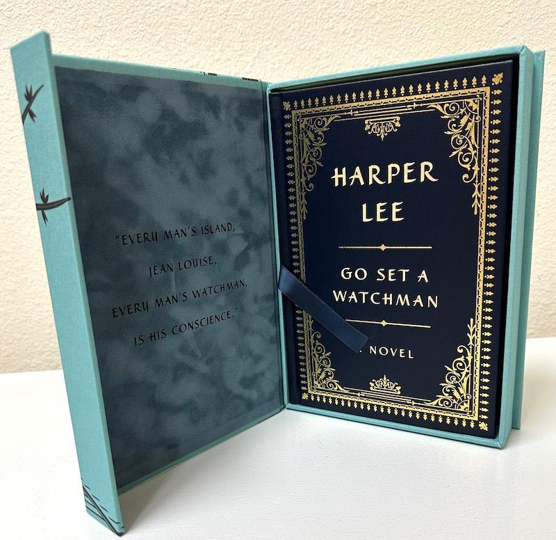 Hill Country Books presents ... Go Set a Watchman, Signed Collector's Edition: A Novel ISBN: 0062454919 Author: Lee, Harper Publisher: Harper Release Date: 2015-11-25 Seller Category: Classics Qty Available: 1 Condition: Collectible: Excellent Sku: off25-2-1 Notes: Full blue Morocco, title in gilt on spine and front cover. Gilted border and embellishments, all edges gilt, patterned endpapers. Stated "First Edition" on copyright page with full number line. A fine copy, appears unread. Housed in the publisher's deluxe clamshell case, full blue cloth, illustration printed in black. Internally lined with matching blue felt,with a quote and an illustration stamped in black. Number 202 of 500 limited edition copies. Signed by Harper Lee on the limitation page. Go Set a Watchman was written in the mid-1950s and serves as an early draft of Lee’s Pulitzer Prize-winning To Kill a Mockingbird. Set two decades after the events of Mockingbird, it follows Jean Louise "Scout" Finch as she returns to Maycomb, Alabama, from New York City. There, she confronts complex truths about her family, hometown, and the evolving social landscape of the South during the 1950s civil rights movement. The novel delves into themes of identity, disillusionment, and moral awakening. Don't forget to check out other great deals in our eBay Store!!