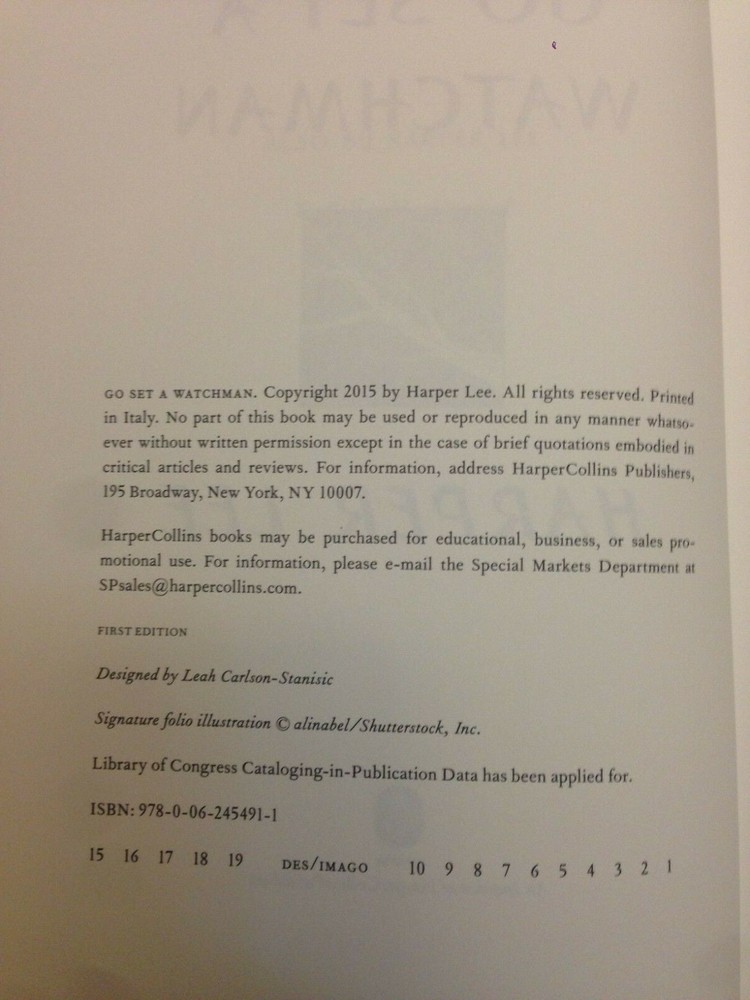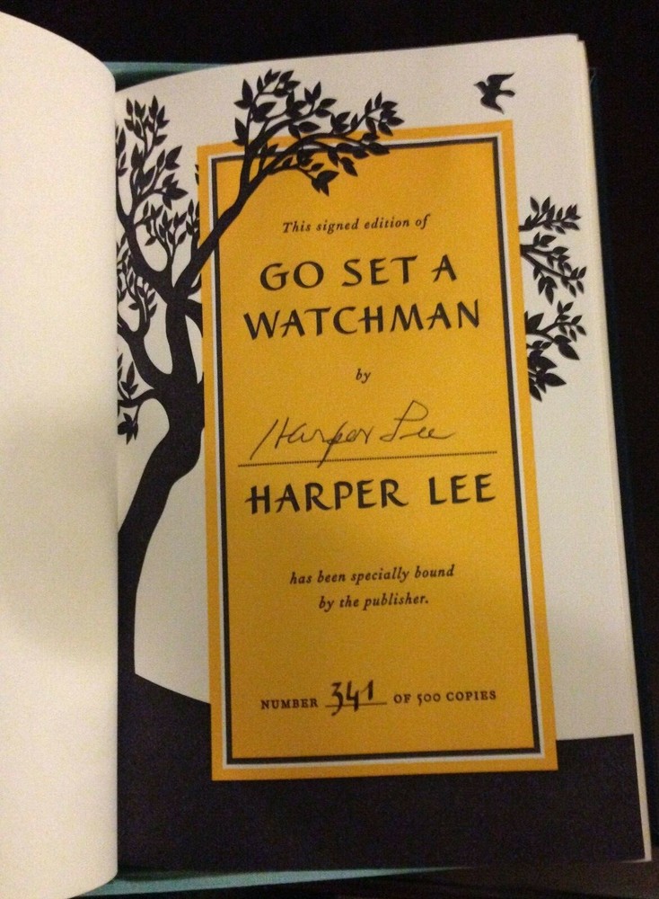 Go Set a Watchman - Signed by Harper Lee. Collector's Edition NEW! A gorgeous limited edition, Signed by the author and Numbered. The pictures are for demonstration only. You will receive a signed brand-new copy with a different signature number. The stunning package includes a hardcover bound in leather with debossed gold foil stamping, gold gilded edges, and printed endpapers, and is enclosed in an elegant cloth box lined in velvet with magnet closure. Only 500 copies of the special signed edition, a highly coveted collector's piece . It makes a wonderful gift! The book will be packaged and shipped very safely and insured! Please email with questions.