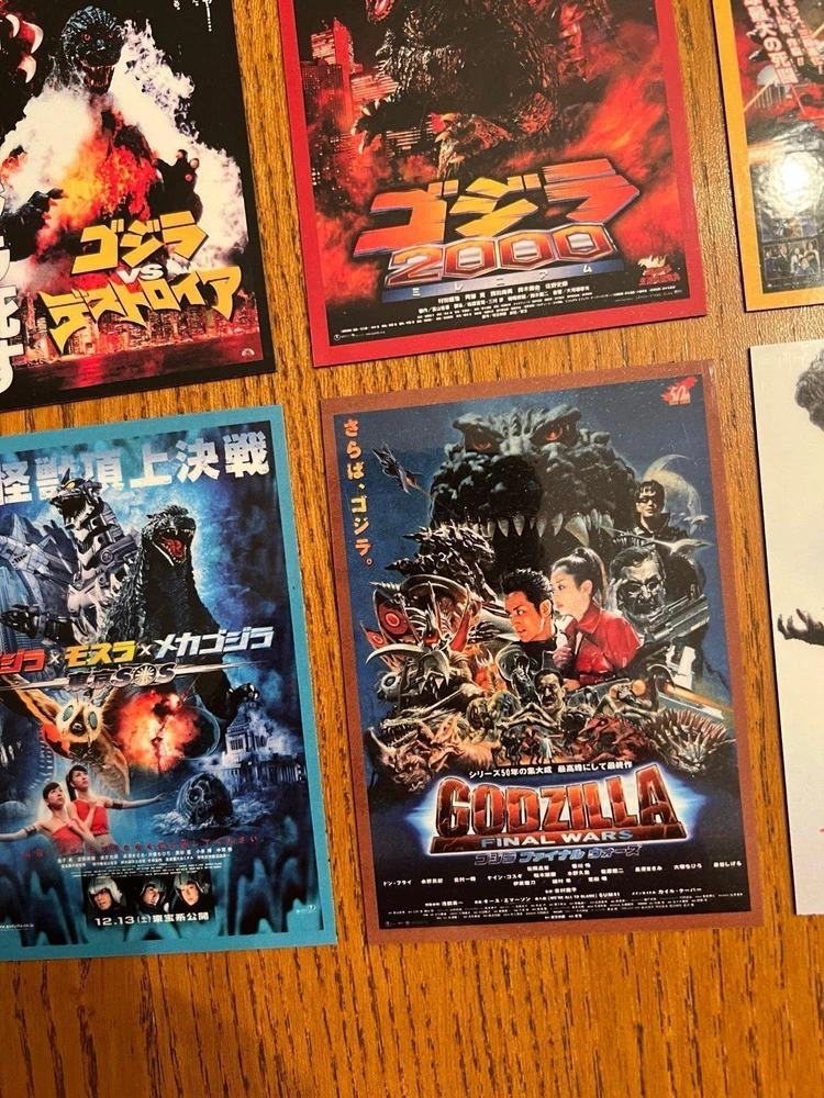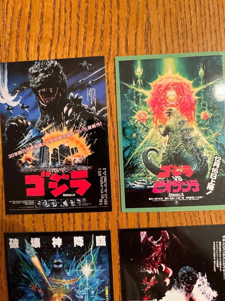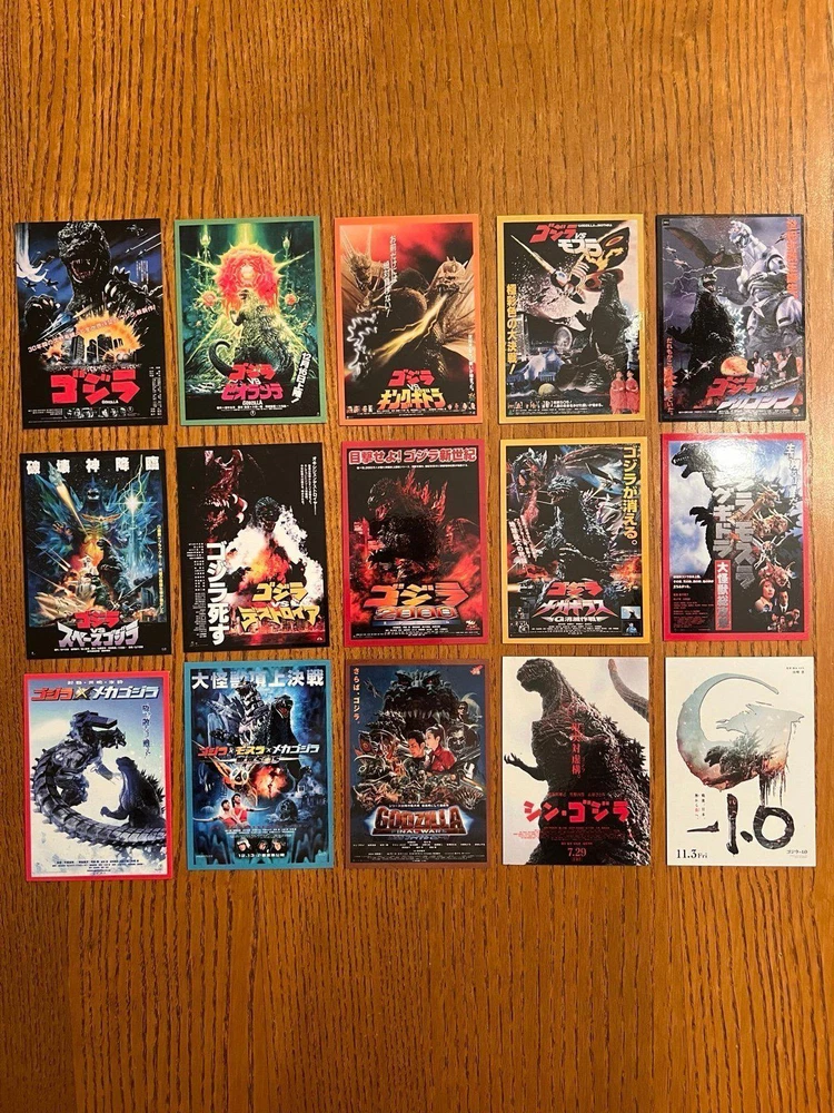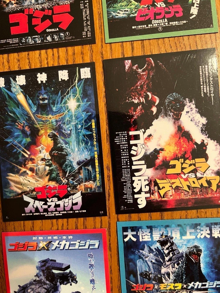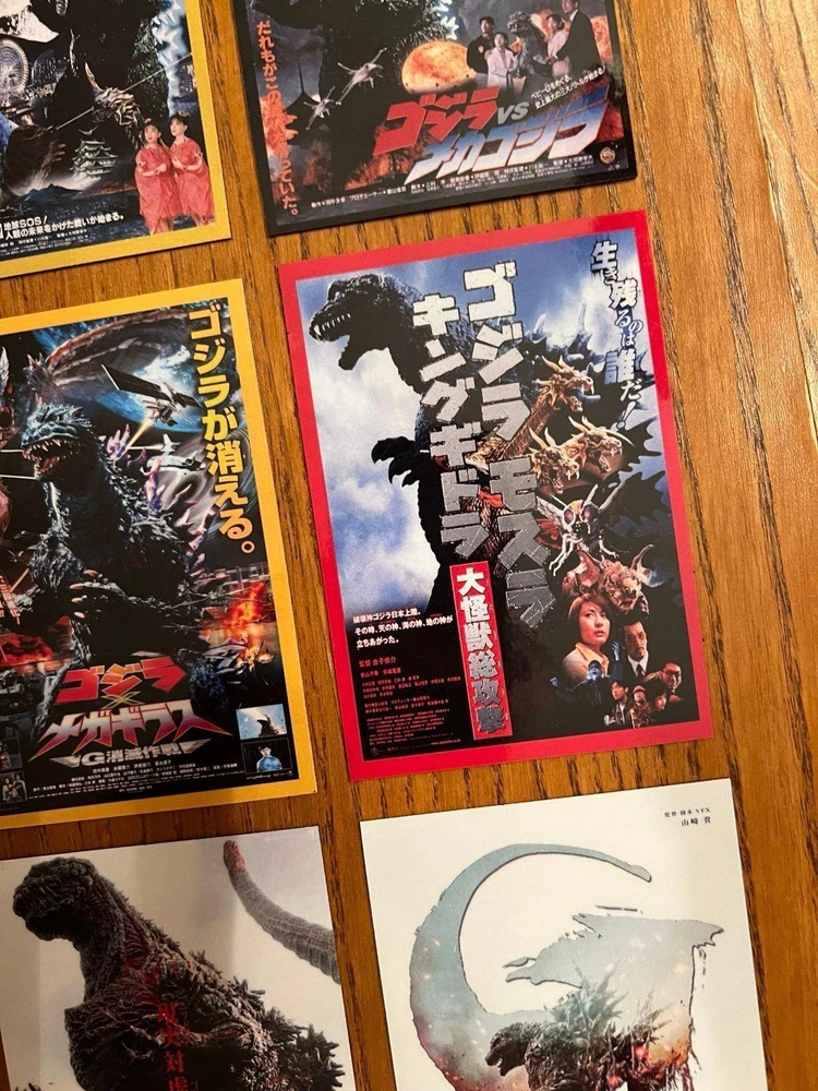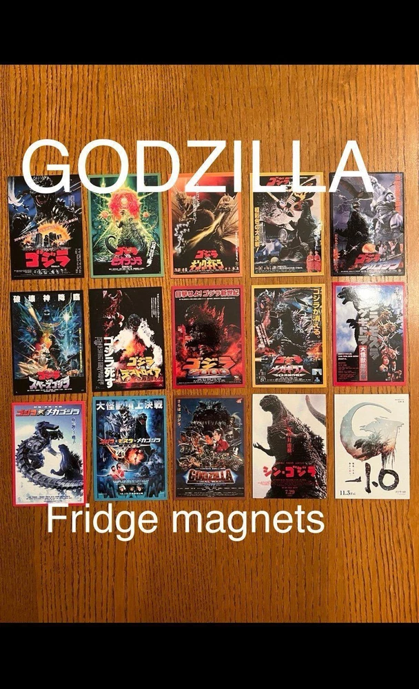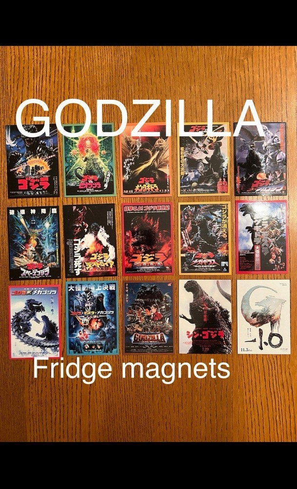 cool set of fifteen GODZILLA / Gojira movie poster art magnets from the original Toho series, measuring 2.65x3.75 per magnet they are super high quality and have a glossy finish to keep them clean and durable they are flexible and will stick to any magnetic appropriate surface - fridges, desks, lockers, doors, or other metal surfaces. includes magnets of: The return of Godzilla -1984 Godzilla vs Biollante - 1989 Godzilla vs King Ghidorah - 1991 Godzilla vs mothra - 1992 Godzilla vs mechagodIlla 2 - 1993 Godzilla vs Space Godzilla - 1994 Godzilla vs Destoroyah - 1995 Godzilla 2000 Millennium - 1999 Godzilla vs megaguirus - 2000 Godzilla, Mothra & King Ghidorah: Giant Monsters All-Out Attack -2001 Godzilla against mechagodzilla - 2002 Godzilla: Tokyo SOS - 2003 Godzilla - final wars - 2004 Shin Godzilla - 2016 Godzilla minus one - 2023 price includes all 15 magnets. Also happy to combine with other orders for a discount or create custom sets/collections - just ask!