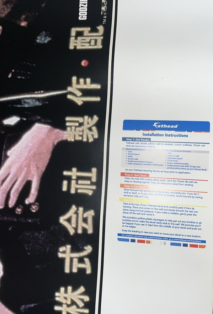 Add a touch of monster to your wall with this Godzilla Fathead decal. Measuring 33x47 inches, this high-quality decal is perfect for any Godzilla fan. The decal is suitable for use on any smooth surfa...