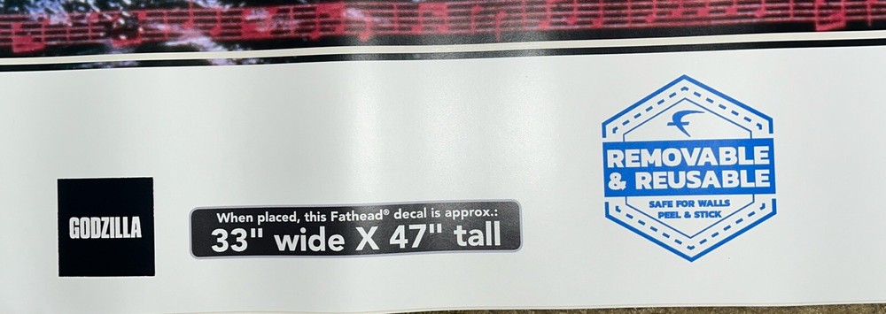 Add a touch of monster to your wall with this Godzilla Fathead decal. Measuring 33x47 inches, this high-quality decal is perfect for any Godzilla fan. The decal is suitable for use on any smooth surfa...