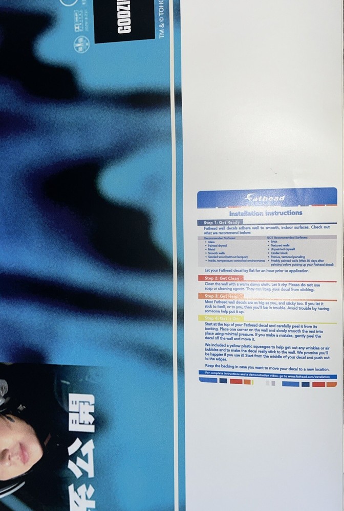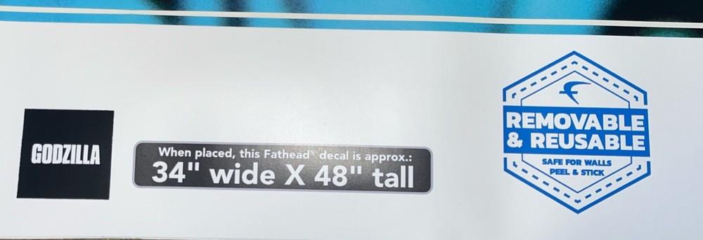 Add a touch of monster to your wall with this Godzilla Fathead decal. Measuring 34x48 inches, this high-quality decal is perfect for any Godzilla fan. The decal is suitable for use on any smooth surface, making it easy to apply to your wall. Featuring the iconic Godzilla character family, this decal is a must-have for any home décor enthusiast. The Fathead brand is known for its high-quality products, and this decal is no exception. Whether you're looking to spruce up your home or office, this Godzilla Fathead decal is the perfect addition.