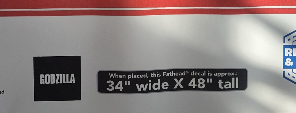 Add a touch of monster to your wall with this Godzilla Fathead decal. Measuring 34x48 inches, this high-quality decal is perfect for any Godzilla fan. The decal is suitable for use on any smooth surface, making it easy to apply to your wall. Featuring the iconic Godzilla character family, this decal is a must-have for any home décor enthusiast. The Fathead brand is known for its high-quality products, and this decal is no exception. Whether you're looking to spruce up your home or office, this Godzilla Fathead decal is the perfect addition.