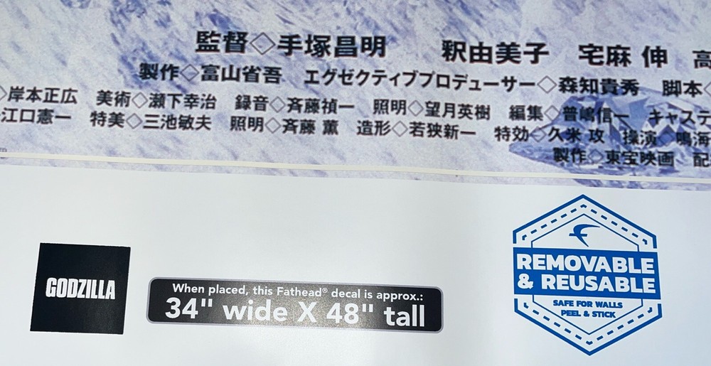 Add a touch of monster to your wall with this Godzilla Fathead decal. Measuring 34x48 inches, this high-quality decal is perfect for any Godzilla fan. The decal is suitable for use on any smooth surface, making it easy to apply to your wall. Featuring the iconic Godzilla character family, this decal is a must-have for any home décor enthusiast. The Fathead brand is known for its high-quality products, and this decal is no exception. Whether you're looking to spruce up your home or office, this Godzilla Fathead decal is the perfect addition.