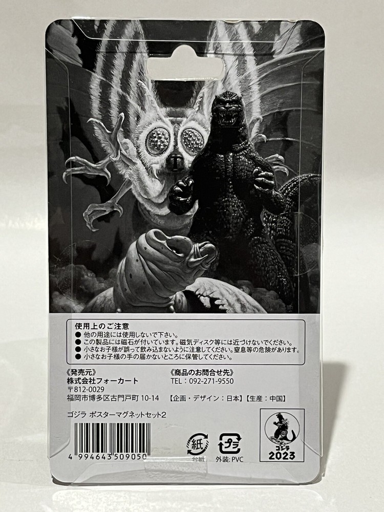 Brand new in packaging, this Godzilla Poster Fridge Magnet Set straight from Japan is a must-have for any collector or fan. Featuring iconic images from the franchise, these magnets are the perfect addition to your kitchen decor. Add a touch of monster-sized fun to your fridge with this unique and eye-catching set. A great gift idea for any Godzilla enthusiast, this set is sure to impress with its high-quality design and attention to detail. Make a statement in your home with these officially licensed collectables that showcase your love for all things Godzilla. Set of 4. 3.5cm x 5cm each size.