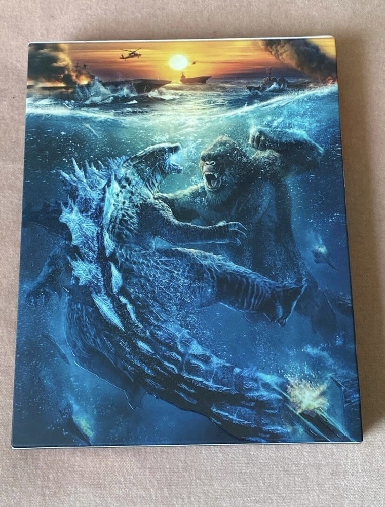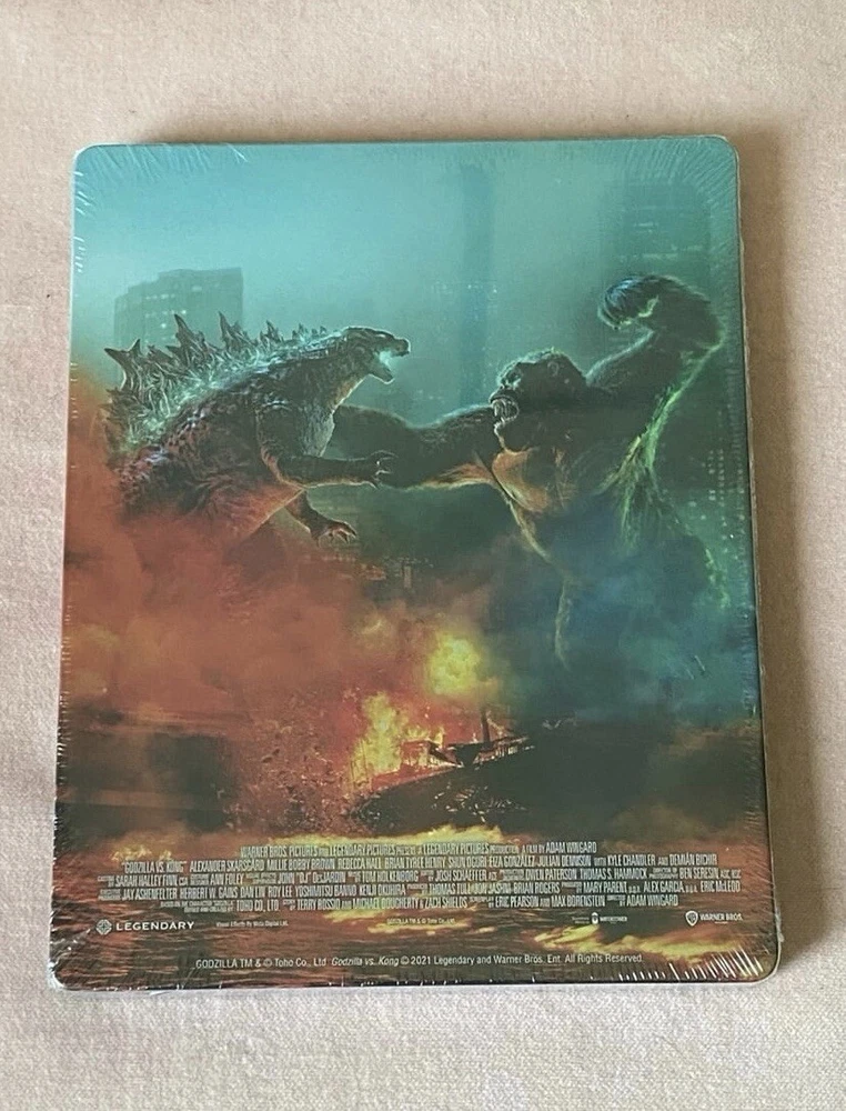 This listing is for a preowned Godzilla vs. Kong 4K and 2D blu-ray steelbook from Manta Lab. Buyer will receive the steelbook set pictured with this listing SPECIFICS Slipbox Type: Single lenticular. Serial number: 792/1000. Factory sealed embossed steelbook. Booklet, movie stickers, envelope, character cards, and postcards included. Manta Lab sticker and lenticular card included. J-card included, but not pictured. CONDITION Small indentation along top edge on back. I have not identified any other dents, dings, paint chipping, scuffing, spine slashes, or damage to any part of this set upon inspection, although I apologize if I miss something minor, like a small scuff. Please examine photos to best evaluate item’s overall condition. SUBTITLES Cantonese, Complex Chinese, English SDH, Canadian French, Parisian French, Danish, Finnish, Italian SDH, Korean, Norwegian, Spanish, Swedish SHIPPING Bubble wrap and box packaging. USPS Media Mail. Thanks for looking.