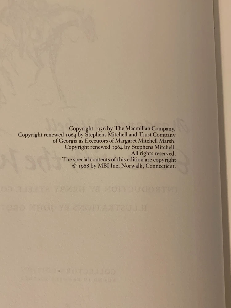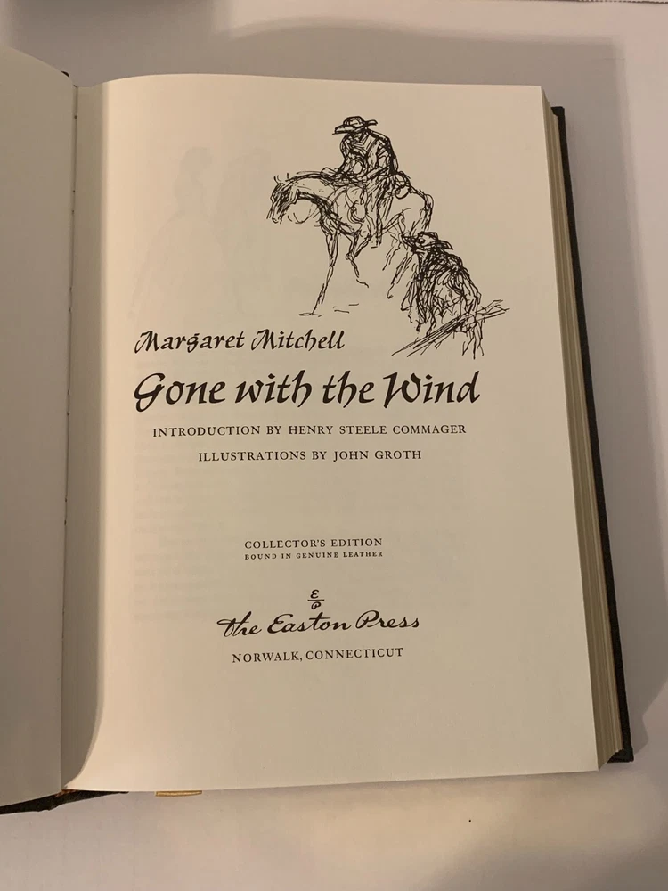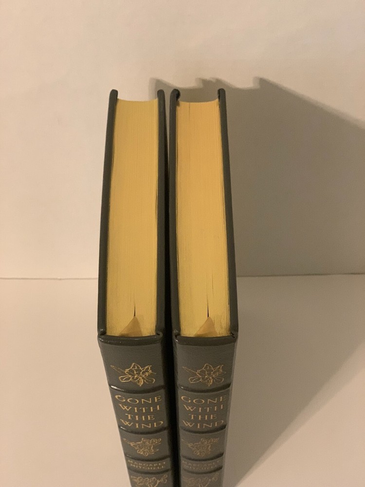 2 Volume Set - Gone with the Wind by Margaret Mitchell, Collector's Edition (Hardcover 1968) . Fully bound in genuine leather 22 kt gold deeply inlaid on hubbed spines Printed on acid-neutral paper Sewn pages Satin-ribbon page markers 22 kt gold gilded page ends Bound in the USA Please see pictures for condition and feel free to contact us with any questions. Books will be safely packaged and shipped via USPS Media Mail. All orders ship within three business days of receiving payment (usually sooner). Thank you for your interest.