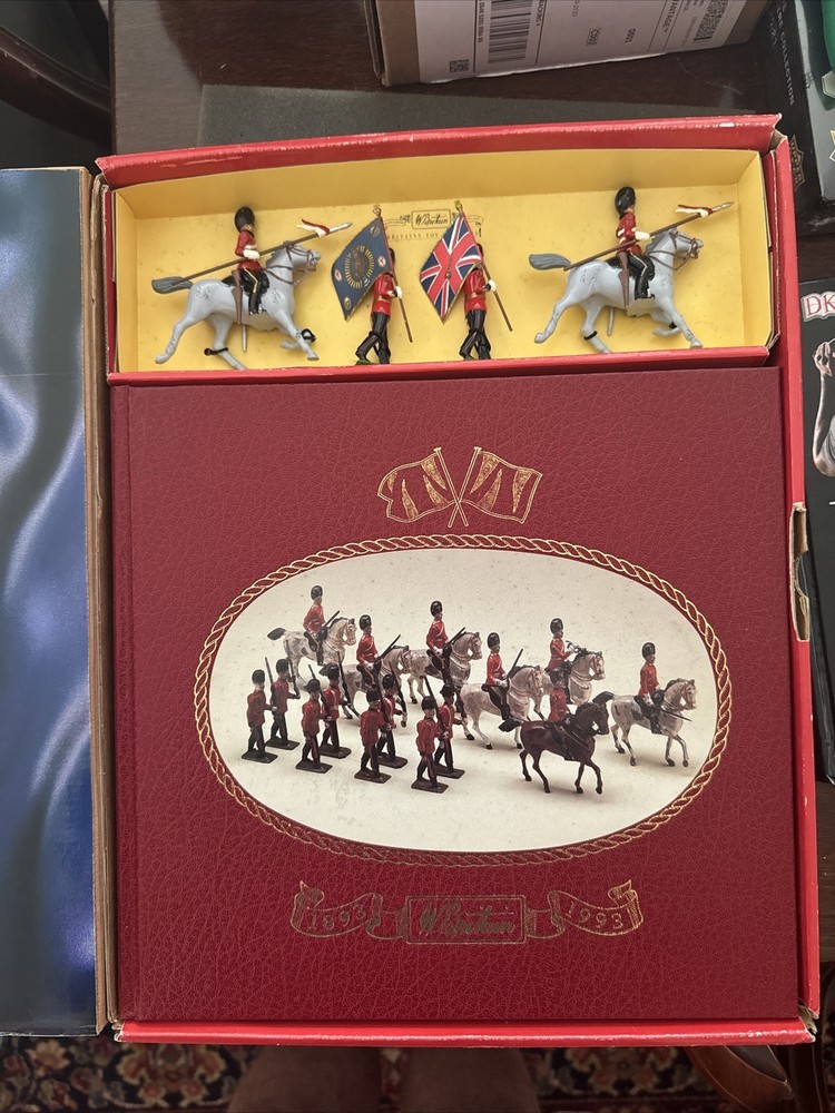 Very good condition, minor shelf wear on some edges of case. See photos. This limited edition box set is a must-have for collectors and enthusiasts of Britains Toy Soldiers. The book titled "100 Years of Britains Toy Soldiers 1893-1993" by James Opie is a picture book that showcases the history of Britains Toy Soldiers. It features four exclusive toy soldiers and comes in its original shipping box with faux leather binding. The book is a part of "The Great Book of Britains" series published by New Cavendish Books. It has 640 pages and is 11 inches long, 11.5 inches wide, and 2 inches high. The book is intended for young adults and adults and is written in English. It is a vintage item from the 1990s and is perfect for those interested in military collectibles, war, and combat, and military history.
