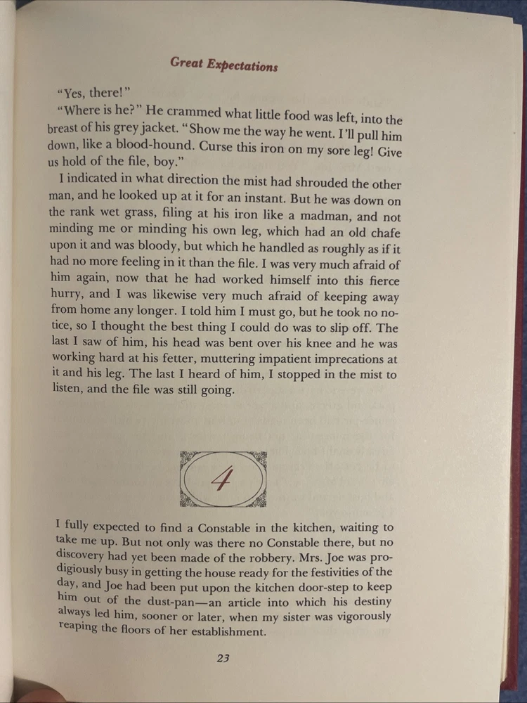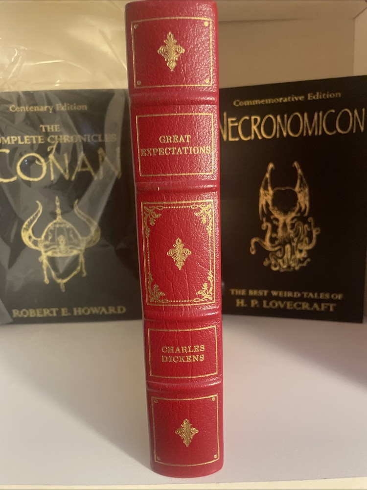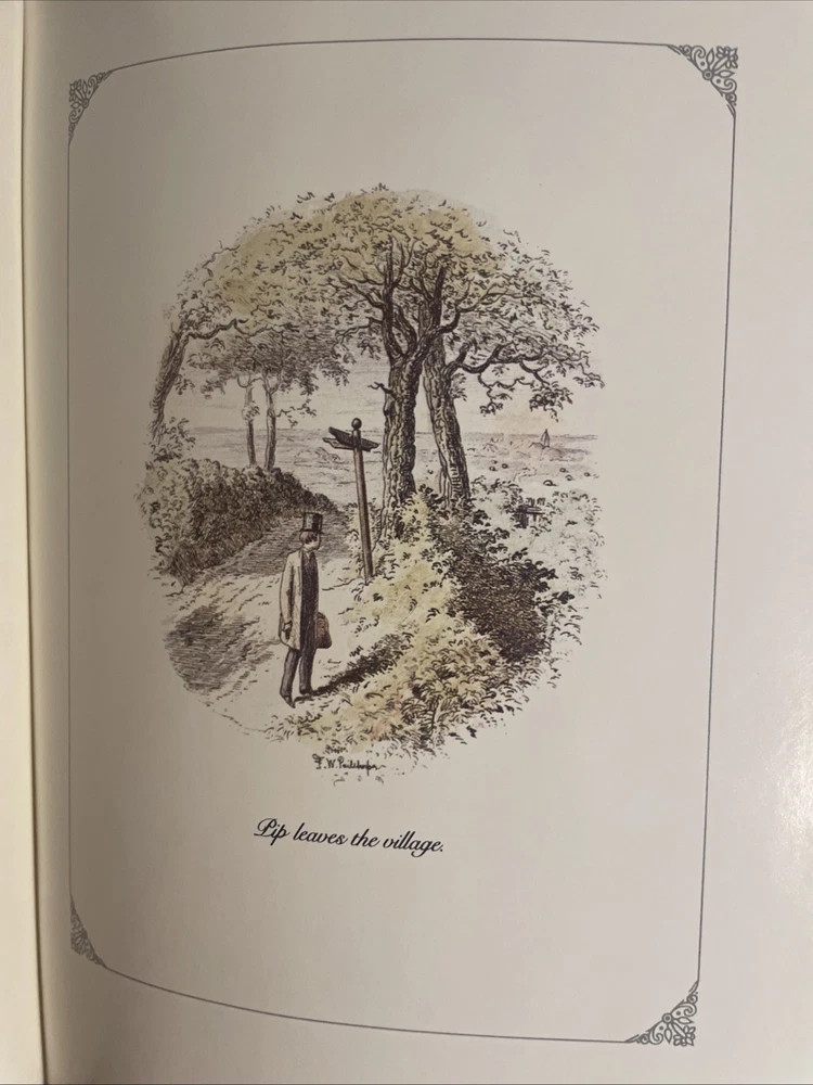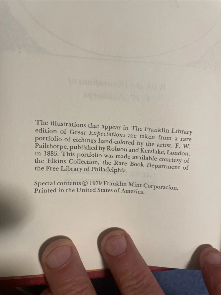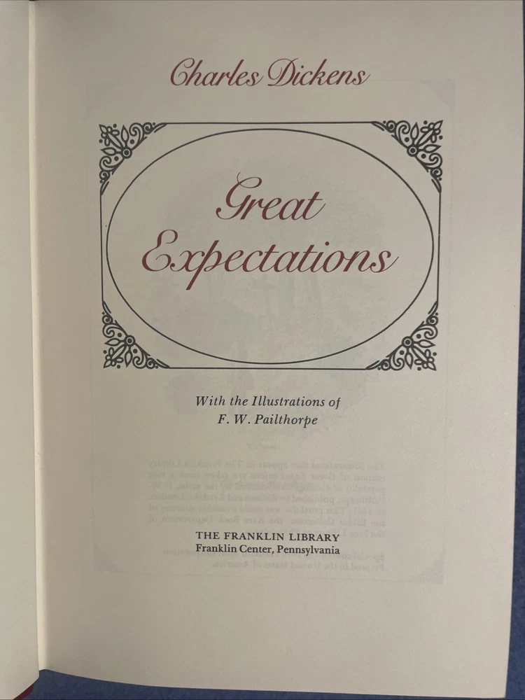 This is a limited edition collector's set of Charles Dickens' "Great Expectations" published by the Franklin Library in Norwalk, CT. The book is an original printing from 1979 and features illustrations by FW Pailthore. It is part of a series by the Franklin Library and is bound in leather, making it a highly sought-after item for collectors of children's literature. The set is a special edition with a unique design and is a valuable addition to any book collection.