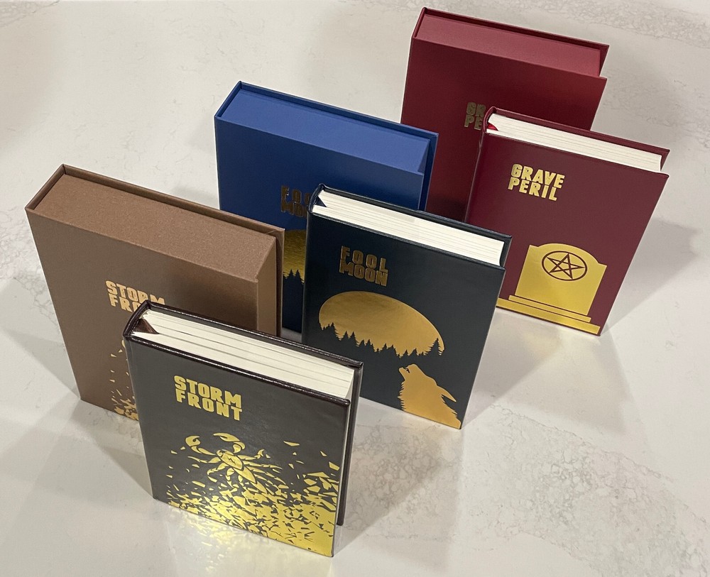Brand New Grim Oak Dresden Files Series and Unread Storm Front, Fool Moon, Grave Peril, and Summer Knight ( on preorder ) 6x Signed by Jim Butcher Purchase includes Book 1, 2, 3, 4, and Series rights of the Dresden Files Series All Books Are Grim Oak First Edition & 1st Printing Matching Lettered Set Lettered Copy of 52 Copies Worldwide Signed by Author Jim Butcher & Illustrator Chris Mcgrath Rights to the Series included with purchase Condition: Brand New. It’s in Brand New Condition please refer to the images. But it’s Brand New and Unread condition. Note: Summer Knight copy is currently in production Actual photos of the product on hand Will Ship Anywhere in the USA and Internationally with Tracking Number. Free shipping anywhere in the USA with tracking number Please free to ask any questions Will be carefully packaged with bubble wrap and place in a cardboard box for safe delivery. IDset 133811