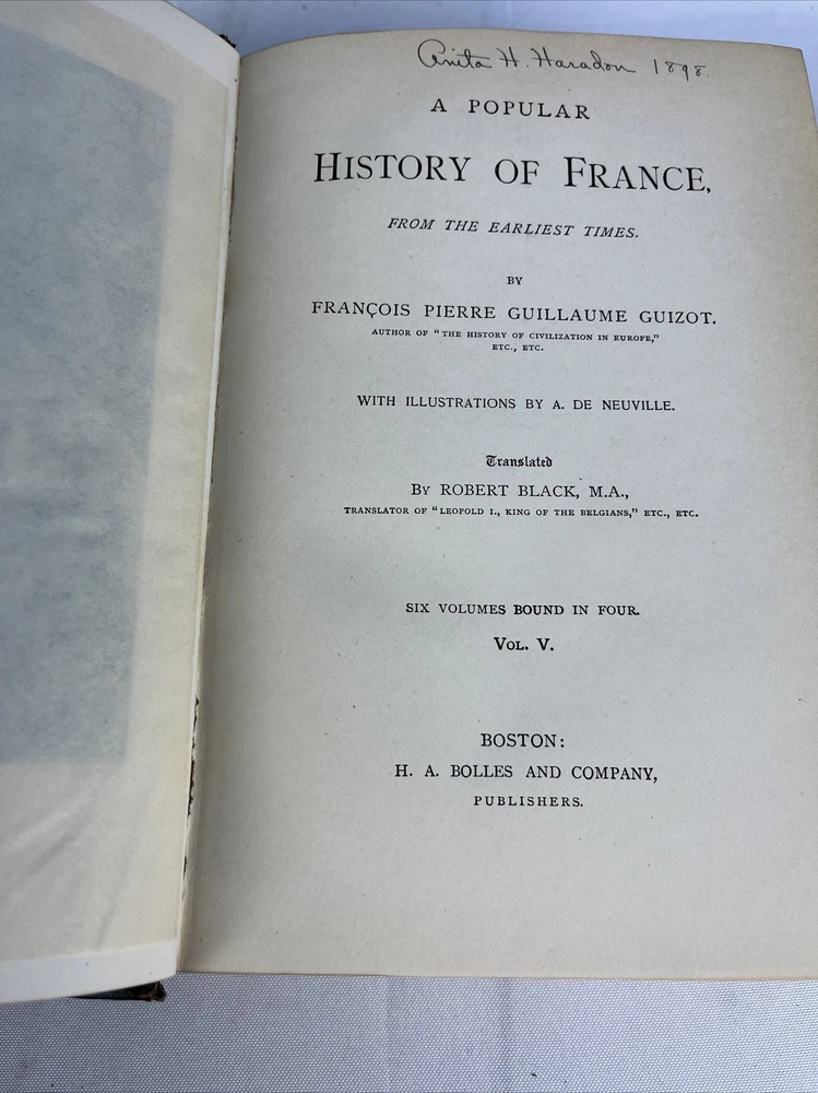 Guizot's History of France - 1868 - Complete 6 Volume Set - Hardcover.