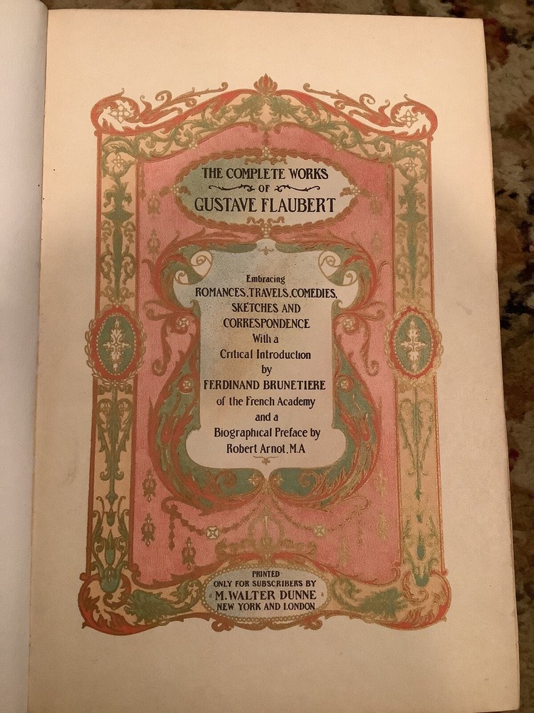 Gustave Flaubert 5 Volumes Leather Bound Incl. Madame Bovary All Published in 1904by Walter Dunne All Leather Bound and are worn from shelf use. Binding are all good. Inside pages are all in excellent condition with rough edges on-all pages all Published in 1904. “MADAME BOVARY” Printed only for Subscribers By M. Walter Dunne. New York and London “Of The MazarinE Edition of The Works of GUSTAVE FLAUBERT 750 sets have been printed This set Being No. 19… Signed and Attested by Robert Arnot Managing Editor. “Salammbo” Volumes 1 and 2 “Sentimental Education” or The History of a Young Man Vol II “The Temptation of St. Antony” or A Revelation of the Soul They will all be wrapped in tissue paper preserving as much of the. Integrity of each book.