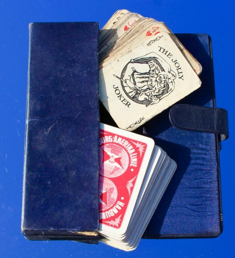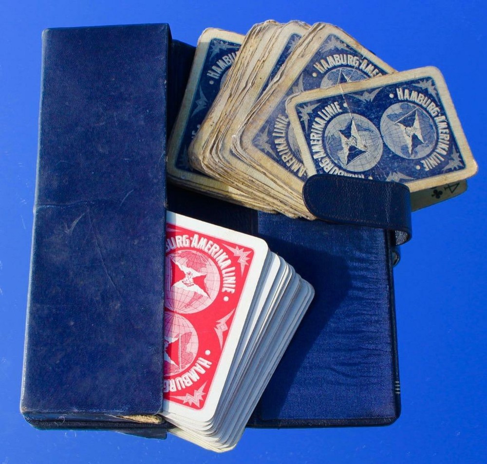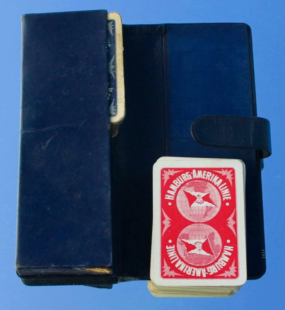 WELCOME TO PURSERSLOCKER'S WEEKLY LISTINGS. I SELL A WIDE RANGE OF QUALITY OCEAN LINER AND 20TH CENTURY DECORATIVE ARTS, SOME ITEMS COME DIRECT FROM MY COLLECTION, WHILST OTHERS ARE RECENT DISCOVERIES AND ARE FRESH TO THE COLLECTORS MARKET. I REGULARLY TRAVEL AROUND THE COUNTRY AND TO THE US, SO IF THERE IS A SPECIFIC ITEM YOU ARE LOOKING FOR PLEASE FEEL FREE TO EMAIL. LIKEWISE IF YOU HAVE ITEMS THAT YOU FEEL I MAY BE INTERESTED IN PLEASE CONTACT ME, I DO PURCHASE SINGLE ITEMS TO WHOLE COLLECTIONS. I REGULARLY SELL ITEMS OF FURNITURE AND FIXTURES FROM THE GREAT OCEAN LINERS OF YESTERYEAR, INCLUDING OLYMPIC, MAURETANIA AND THE QUEENS SO PLEASE CHECK MY OTHER LISTINGS. VERY RARE LEATHER BOUND BRIDGE SET, AS ISSUED FOR THE HAMBURG AMERICA LINE, C-1912, VERY MUCH OF THE TYPE AND QUALITY THAT WOULD HAVE BEEN USED ON THE SS 'IMPERATOR'. STUNNING HIGH QUALITY LEATHER CASE, CONTAINING BOTH SETS OF ORIGINAL PLAYING CARDS. THE BLUE SET ARE HEAVILY USED BUT THE RED ARE IN BETTER ORDER, IN ANY RATE I CANT SAY I HAVE EVER SEEN ANY HAPAG PLAYING CARDS FROM THIS ERA, LET ALONE A DOUBLE CASED SET, RARE EXAMPLES. NICE ORIGINAL ARTICLE OF OCEAN LINER STEAMSHIP MEMORABILIA IN THE CONDITION AS SHOWN IN THE PICTURES. FOR MORE INFORMATION PLEASE ASK. IN CONDITION AS SHOWN (SEE PICTURES). SEARCH WORDS:- TITANIC OLYMPIC WHITE STAR LINE CUNARD QUEEN MARY OCEAN LINER QUEEN ELIZABETH QE2 MAURETANIA LUSITANIA STEAMSHIP STEAM SHIP RMS SS R.M.S. S.S. ANY QUESTIONS PLEASE FEEL FREE TO ASK. PLEASE NOTE DUE TO A VERY SMALL MINORITY OF RUDE EBAYER USERS, ANY ITEM SOLD HERE ON EBAY ABOVE £50.00 WILL HAVE INSURANCE ADDED TO THE INVOICE. I DO NOT CONTROL THE BRITISH POSTAL SERVICE WHICH AT PRESENT SEEMS TO BE HIGHLY UNRELIABLE. DUE TO THE HIGH VOLUME OF EBAY SALES I MAKE, I ONLY MAKE ONE TRIP TO THE POST OFFICE PER WEEK, ITEMS ARE SENT OUT ONE WEEK AFTER PAYMENT HAS CLEARED. ALL ITEMS SENT HAVE PROF OF POSTAGE. Images sell! Get Supersized Images & Free Image Hosting Attention Sellers - Get Templates Image Hosting, Scheduling at Auctiva.com. Track Page Views With Auctiva's FREE Counter