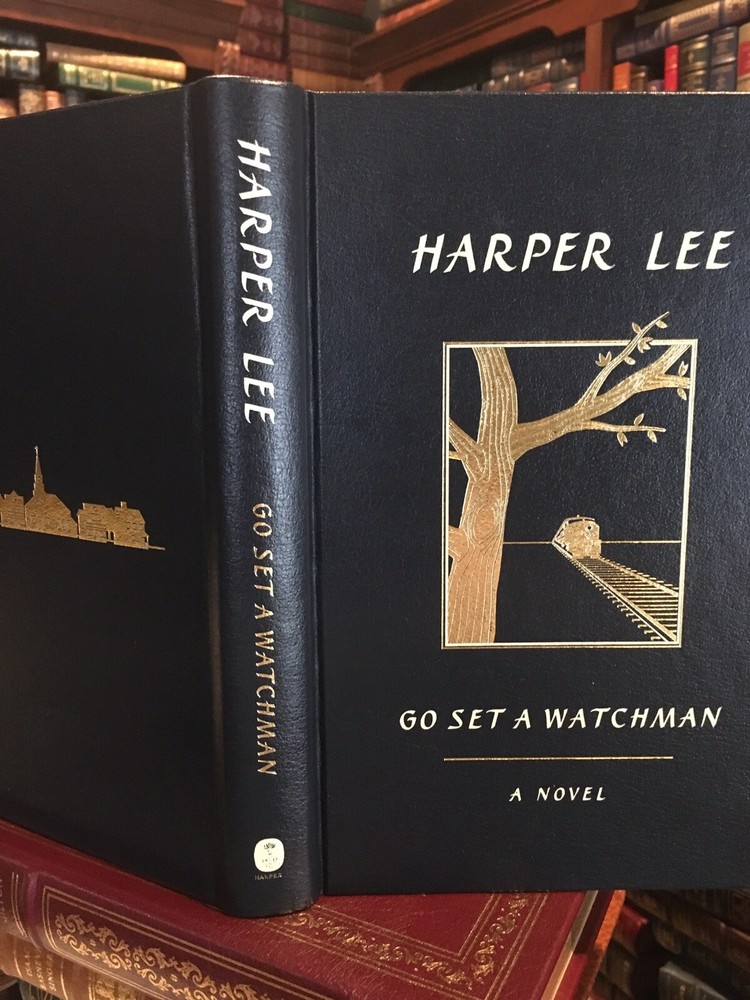 HARPER/COLLINS Publishers' leather-bound FIRST EDITION of Harper Lee's landmark #1 New York Times bestselling novel set two decades after her beloved Pulitzer Prizewinning masterpiece, "To Kill a Mockingbird." Bound in full hunter green leather, the book has decorative paper end leaves, acid-free paper, Symth-sewn binding, gold gilding on three edges, a satin book marker---in near FINE condition. Set in Maycomb, Alabama, twenty-six-year-old Jean Louise Finch---"Scout"---returns home from New York City to visit her aging father, Atticus Finch. Set against the backdrop of the civil rights tensions and political turmoil that were transforming the South, Jean Louise's homecoming turns bittersweet when she learns disturbing truths about her close-knit family, the town, and the people dearest to her. Scout's boyfriend, HENRY CLINTON, is Atticus' law partner and in still in love with her. Memories from her childhood flood back, and her values and assumptions are thrown into doubt. Featuring many of the iconic characters from "To Kill a Mockingbird," "Go Set a Watchman" perfectly captures a young woman, and a world, in painful yet necessary transition out of the illusions of the past----a journey that can only be guided by one's own conscience. Written in the mid-1950s, "Go Set a Watchman" imparts a fuller, richer understanding and appreciation of Harper Lee. Here is an unforgettable novel of wisdom, humanity, passion, humor, and effortless precision-a profoundly affecting work of art that is both wonderfully evocative of another era and relevant to our own times. It not only confirms the enduring brilliance of "To Kill a Mockingbird," but also serves as its essential companion, adding depth, context, and new meaning to an American classic. 278 pages. I offer Combined shipping.