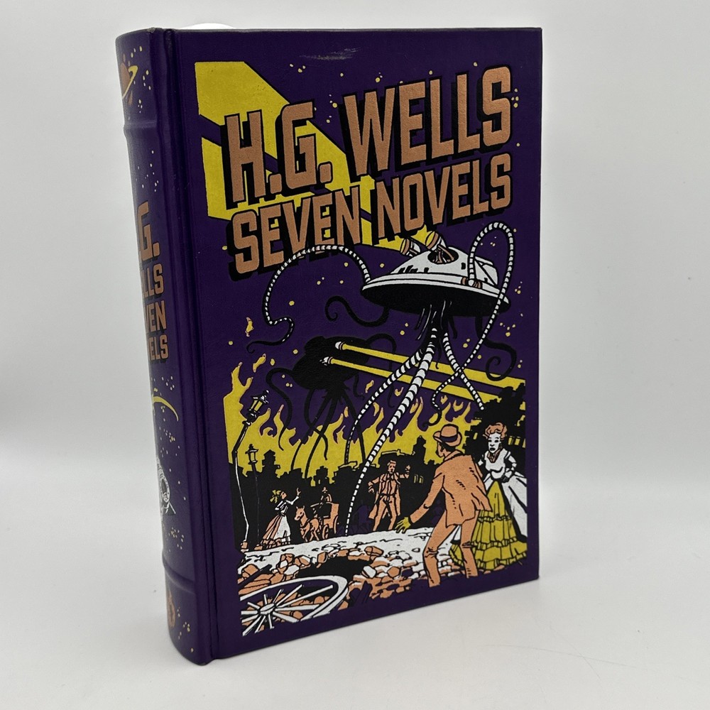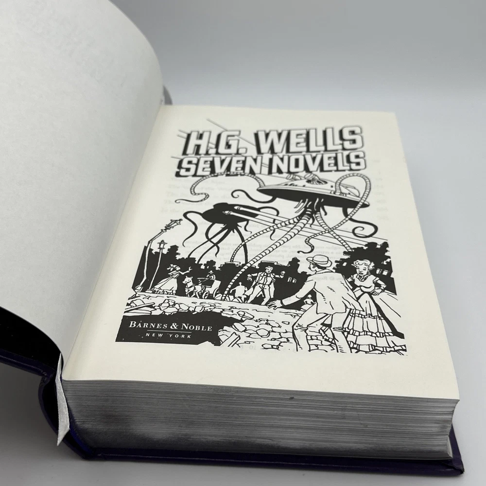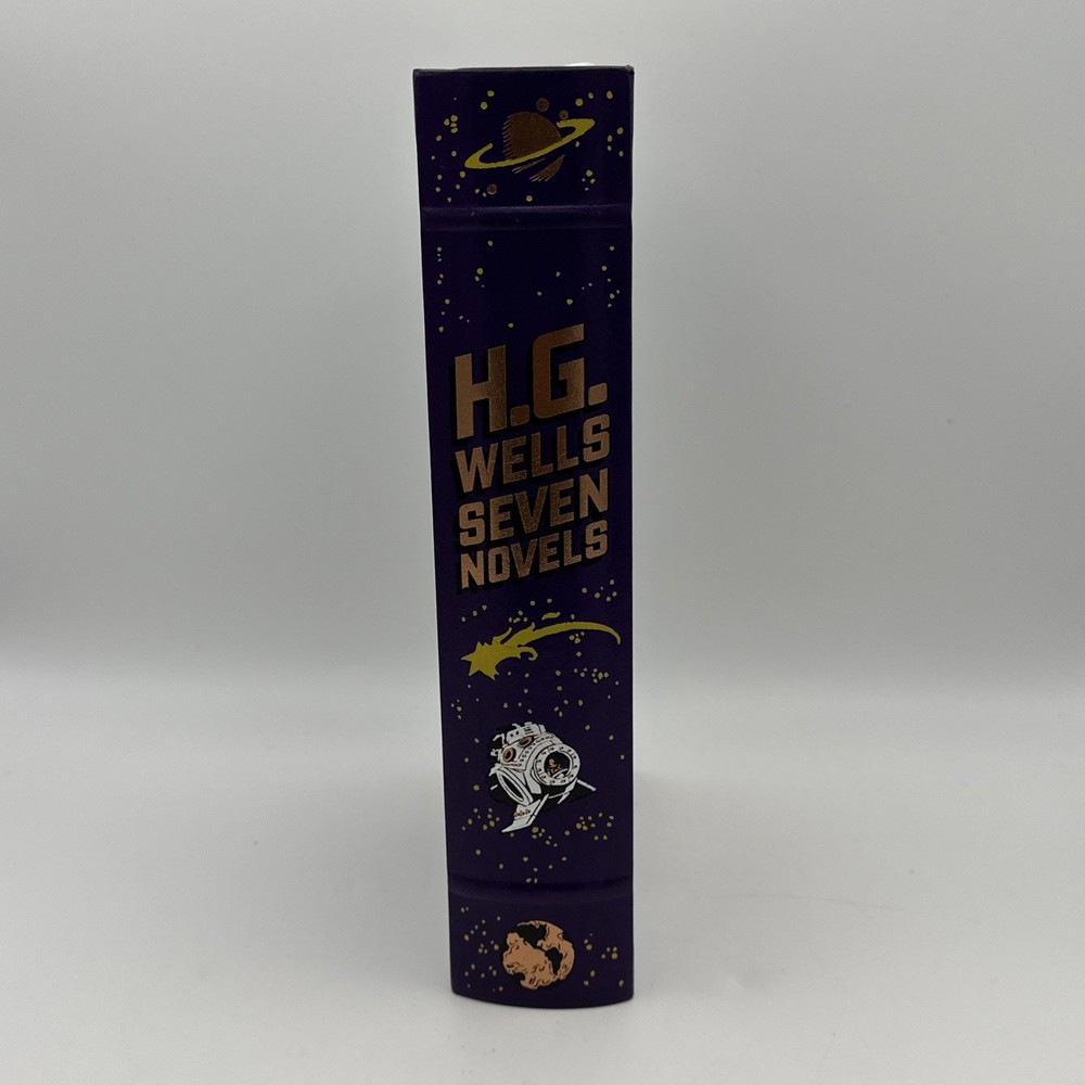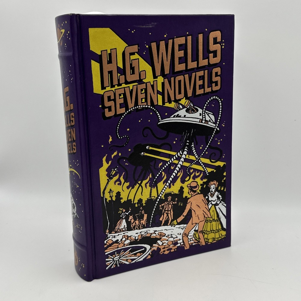 The H.G. Wells Seven Novels Barnes and Noble Exclusive 2009 Edition Hardcover is a vintage special edition of seven novels by H.G. Wells. Published by Barnes & Noble, this leather-bound collection iincludes the following novels: 1: The Time Machine 2: The Island of Dr Moreau 3: The Invisable Man 4: The war of the worlds 5: The First Men in the Moon 6: The Food of the Gods 7: In the Days of the Comet This exclusive edition, with a publication year of 2009, showcases the timeless works of H.G. Wells in a classic format, making it a valuable addition to any book collection. Condition detailed in photos; pages are very nice and appear unread. There is some wear to the cover; notably a blemish towards the top of the front cover which is shown in photos. Thanks for looking!