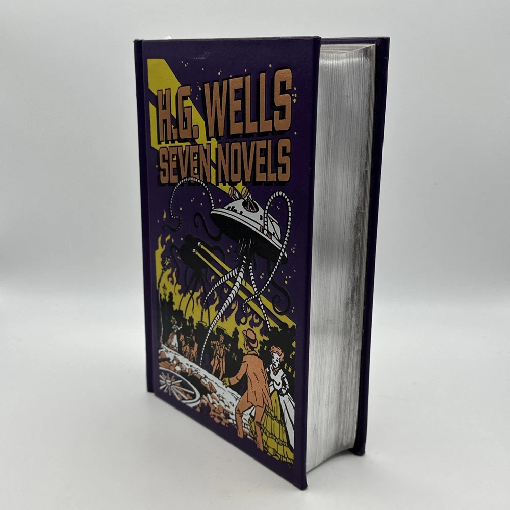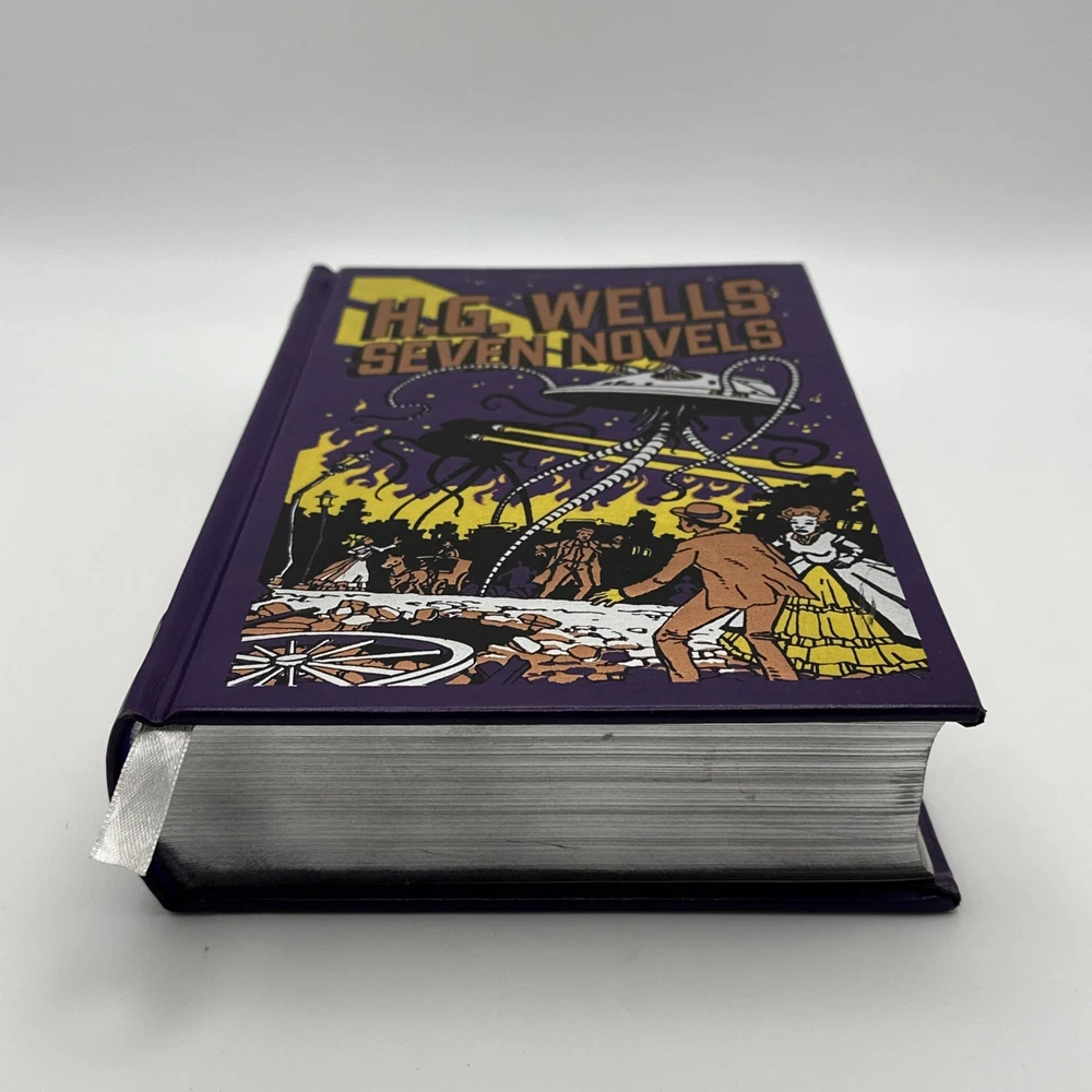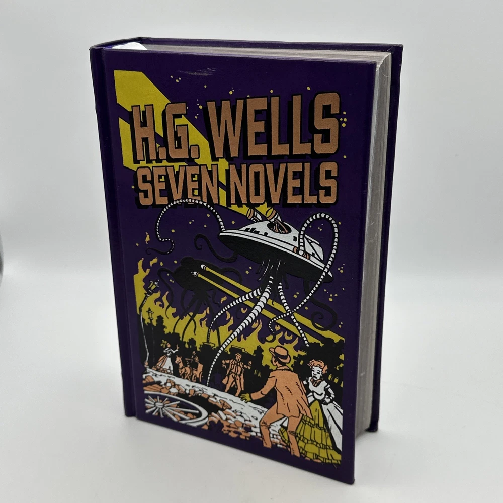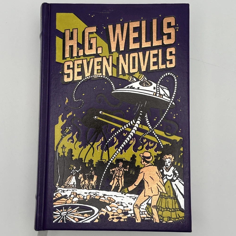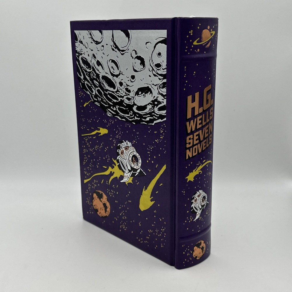 The H.G. Wells Seven Novels Barnes and Noble Exclusive 2009 Edition Hardcover is a vintage special edition of seven novels by H.G. Wells. Published by Barnes & Noble, this leather-bound collection iincludes the following novels: 1: The Time Machine 2: The Island of Dr Moreau 3: The Invisable Man 4: The war of the worlds 5: The First Men in the Moon 6: The Food of the Gods 7: In the Days of the Comet This exclusive edition, with a publication year of 2009, showcases the timeless works of H.G. Wells in a classic format, making it a valuable addition to any book collection. Condition detailed in photos; pages are very nice and appear unread. There is some wear to the cover; notably a blemish towards the top of the front cover which is shown in photos. Thanks for looking!