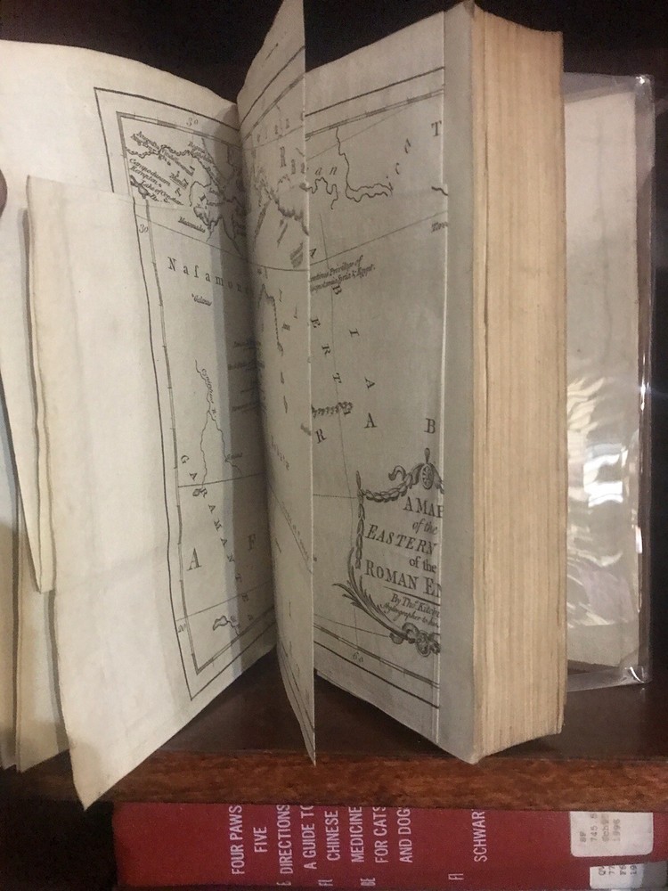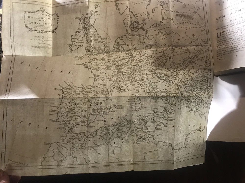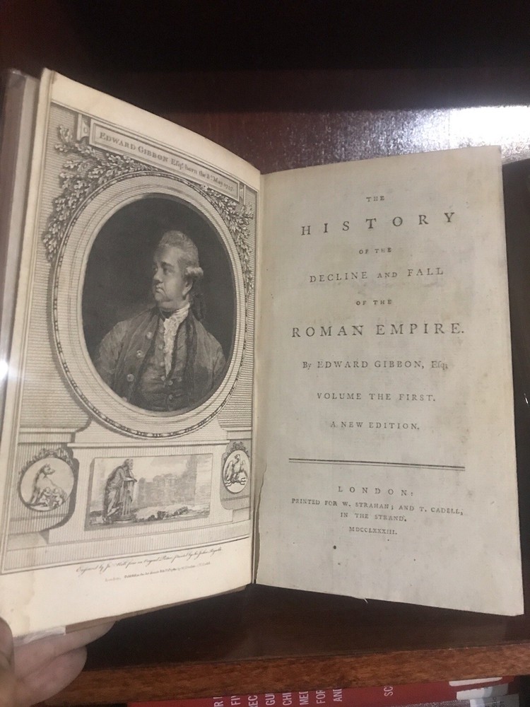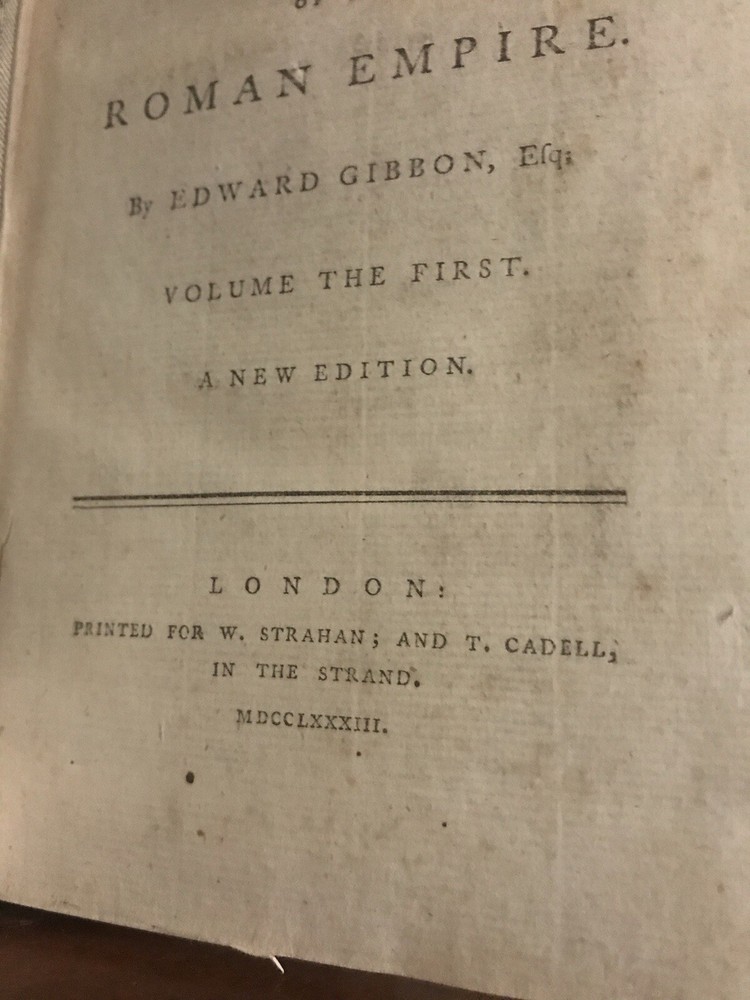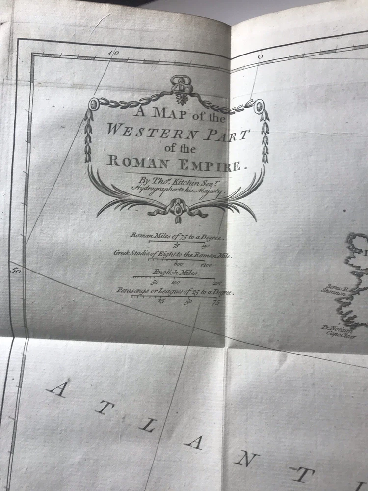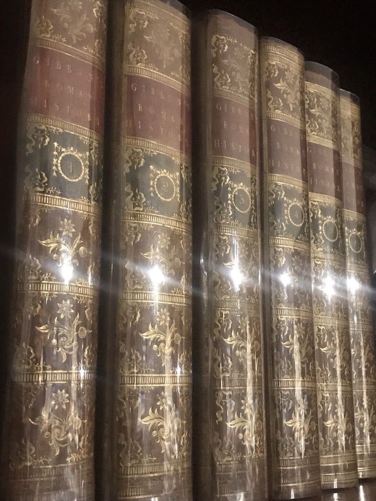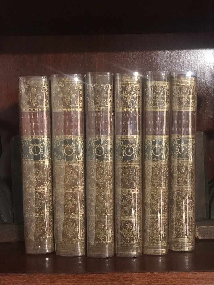 Near fine condition! 1783, beautiful full leather bound set, decorated with lavish, hand tooled, gilt ornament. Books are over 240 years old, and still looks amazing!! Complete with all six original volumes, and in their original leather bindings! Illustrated with large fold out maps of the empire. Books housed in heavy/thick archival clear plastic to protect and keep them in the same fine condition! Set will look amazing on your shelves, and will only appreciate in value! Fantastic investment quality set. Near fine. Books were hand bound in the old world manner with the pages sewn into the cords (recessed) and the cords are sewn into the front and rear boards. Covers firmly attached, but there is some starting between spines and covers on some volumes. Internally fine+! Each volume is 8.5” x 5.25”.
