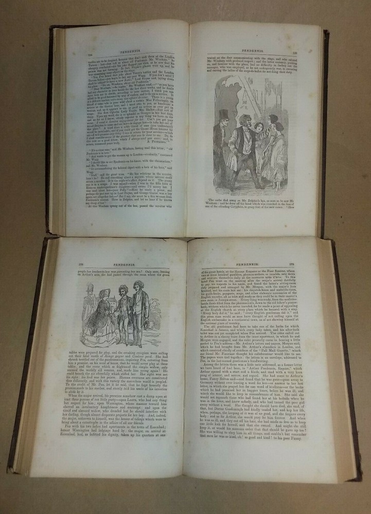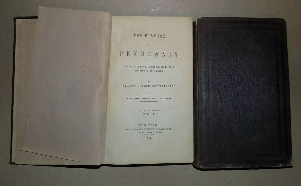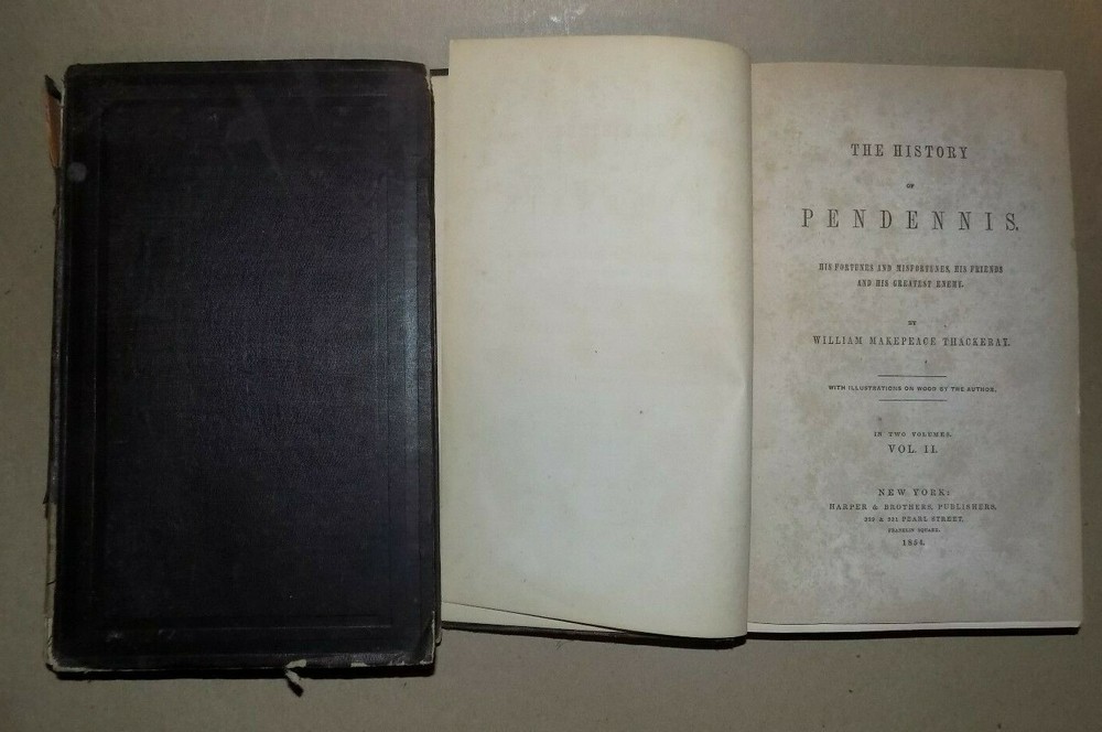 HISTORY OF PENDENNIS by William Makepeace Thackeray - 1854 2 Vol Set - Hardcover This is a complete two volume set. Both books are complete with NO rips or markings. Both books have some cover wear from age. Each book has a name (Farrand) in the front. These books are 165 years old! Please see pics. We have been selling books online since 2003. Our book stock covers a wide range of subjects such as First editions, Signed editions, Fiction, History, and many more. Our Guarantee Any purchase can be returned for any reason; we will fully refund the purchase price if notified within 30 days of receipt and the book(s) is returned in the same condition as sent. Shipping charges will also be refunded if the book has been incorrectly described. Shipping All books shipped to US destinations are sent US Post Office Media Mail. Faster shipping is available, please ask before paying. We will combine shipping on items purchased at the same time.