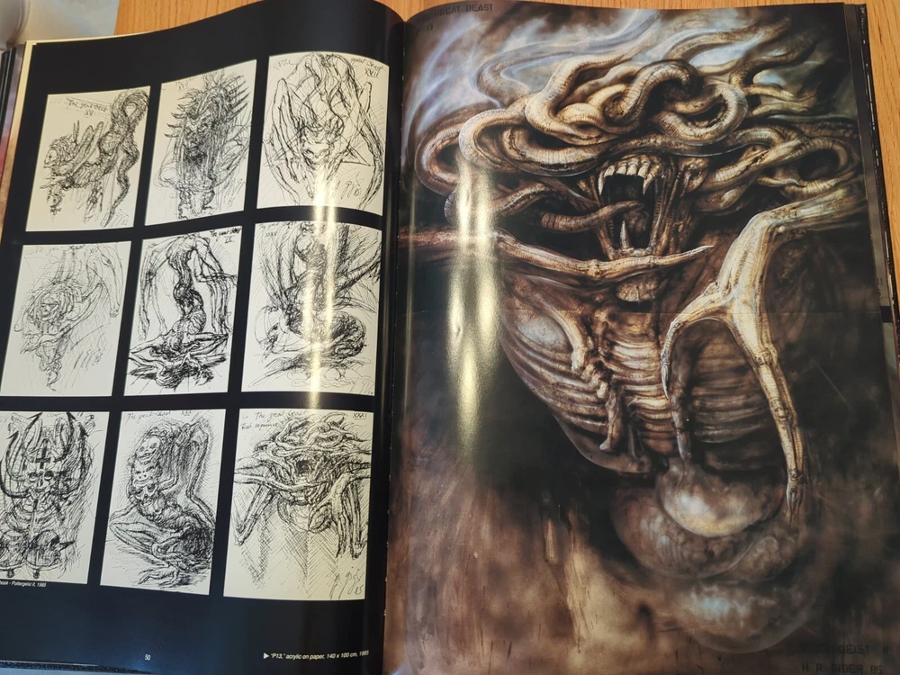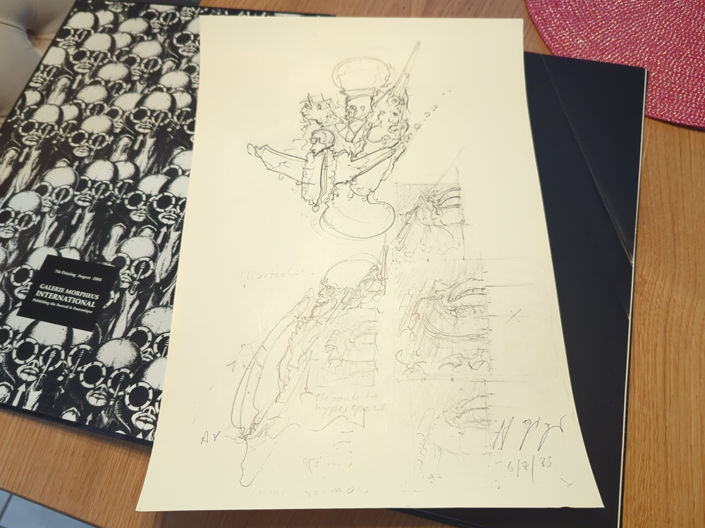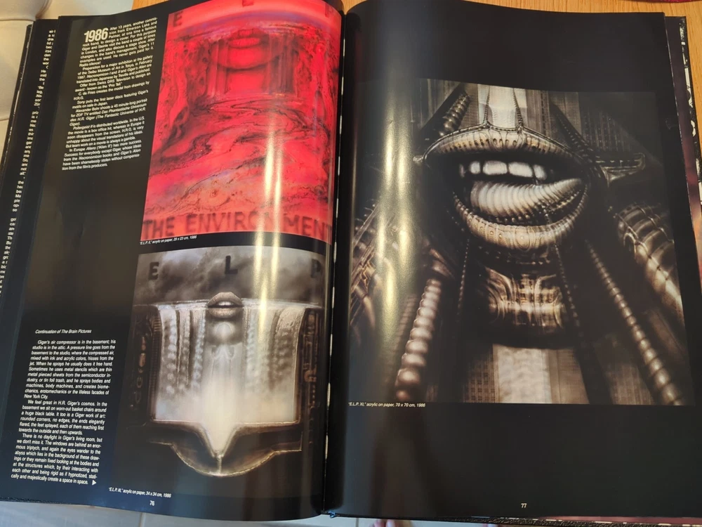H. R. Giger's Biomechanics Limited Edition Leather Bound One of 300 printed Includes AP print signed by Giger that would have been included with this book. Certificate of authenticity present. First 3,4 pages have a corner crease, see pictures Smoke Free Home H. R. Giger, Oscar-winning designer of the hit movie Alien and widely considered the world’s finest dark fantasy artist, redefined edgy, contemporary art starting in the 1980s with his biomorphic creatures inhabiting gorgeously grim dystopias. His visionary art is unmistakable. Unfettered by labels or category, Giger’s work has appeared in every conceivable format from set design to sculpture, paintings to airbrush, book covers to album covers. This massive, oversized volume, limited to just 300 copies worldwide, showcases 200 of Giger's paintings and sculptures, including design paintings for Emerson, Lake and Palmer albums, and the film Poltergeist II. The book is bound in black leather, with a black cloth slipcase all embossed in gold foil. It includes a signed and numbered print of one of Giger’s drawings, which can be removed and framed.