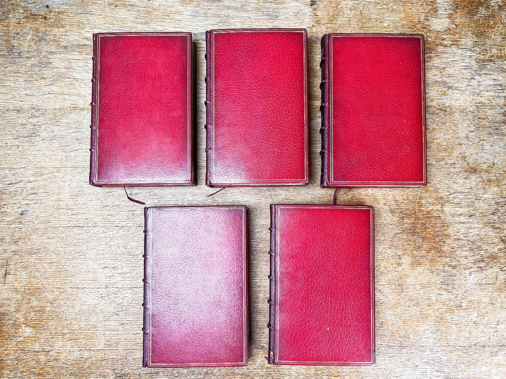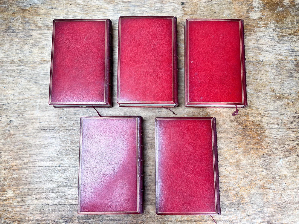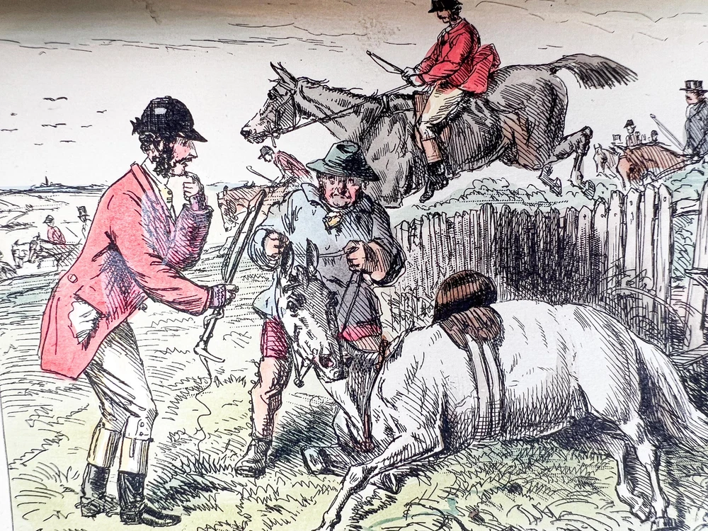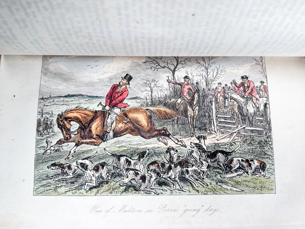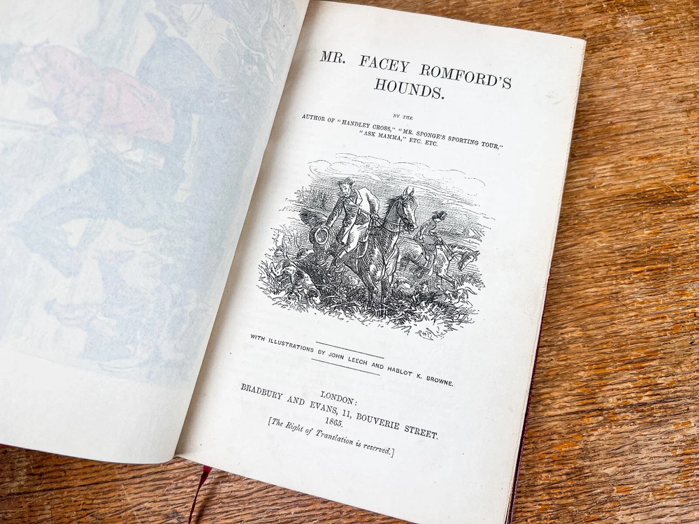 This charming five-volume set by Robert Smith Surtees, published in the mid to late 1800s, is a true treasure for collectors and literary enthusiasts. Bound in rich red leather with intricately detailed gilt spines, these volumes radiate Victorian refinement and timeless sophistication. Illustrated by the renowned John Leech, each book features vibrant hand-colored plates that bring to life the spirit of English country pursuits—from exhilarating equestrian adventures to lively hunting scenes and the social intricacies of the sporting gentry. The combination of Surtees’ sharp wit and Leech’s masterful illustrations makes this set not only a literary classic but also a visual delight. A remarkable addition to any fine library, equestrian collection, or antique book display, this set captures the essence of 19th-century sporting life with enduring charm and historical significance. The set includes: Mr. Facey Romford’s Hounds (1865) Ask Mamma (1858) Handley Cross (1854) Plain or Ringlets (1860) Mr. Sponge’s Sporting Tour (1853) Each volume, measuring 9 inches high, 5.5 inches wide, and between 1.25 to 2 inches deep, is a substantial and beautifully crafted piece of literary history. The leather-bound spines add a stately presence, making this set a striking addition to any antique book collection or classic country house decor. Good condition with tight bindings, light age-related wear, some wear to corners from handling, clean interior pages. Please review the photos for further assessment. Whether for the avid reader, equestrian enthusiast, or collector of fine antiquarian books, this set embodies the grandeur and wit of 19th-century sporting literature. A remarkable find that bridges the worlds of literature, art, and history. Check out our other antique listings.