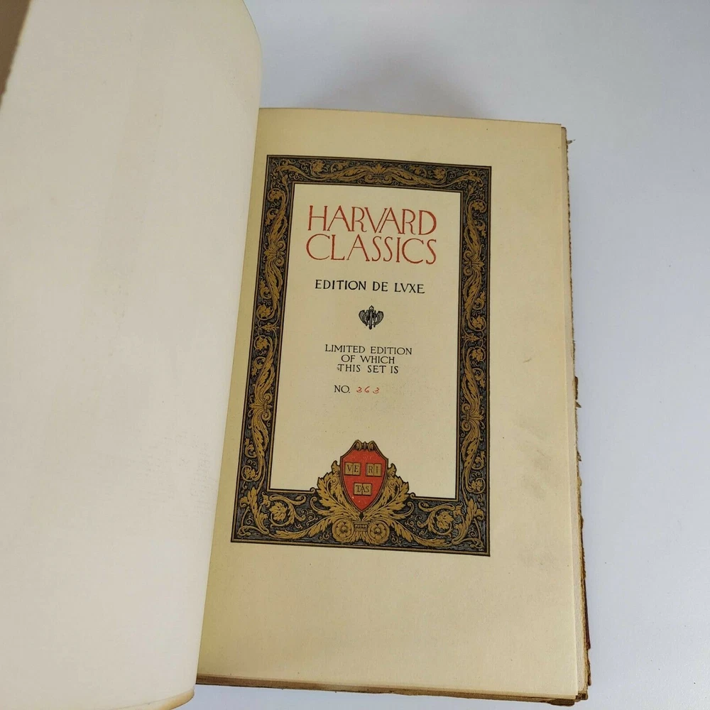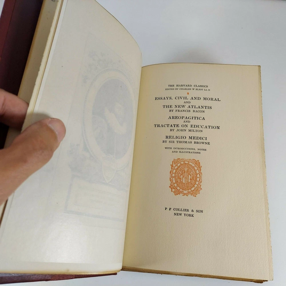 Harvard Classics 3 Bacon Milton's Prose Thos Browne Library Edition 1909 PF Collier Set #363. Condition is Acceptable with cover wear, flaking of leather and light tanning of pages as shown. Leather on the spine is very brittle and prone to cracking if the book is not opened carefully. Shipped with USPS Media Mail