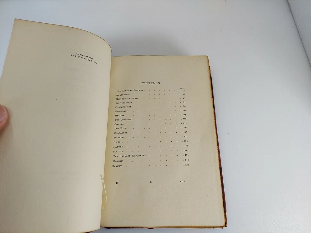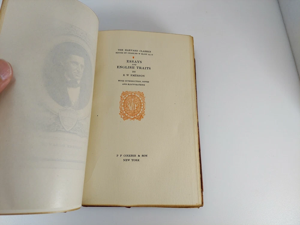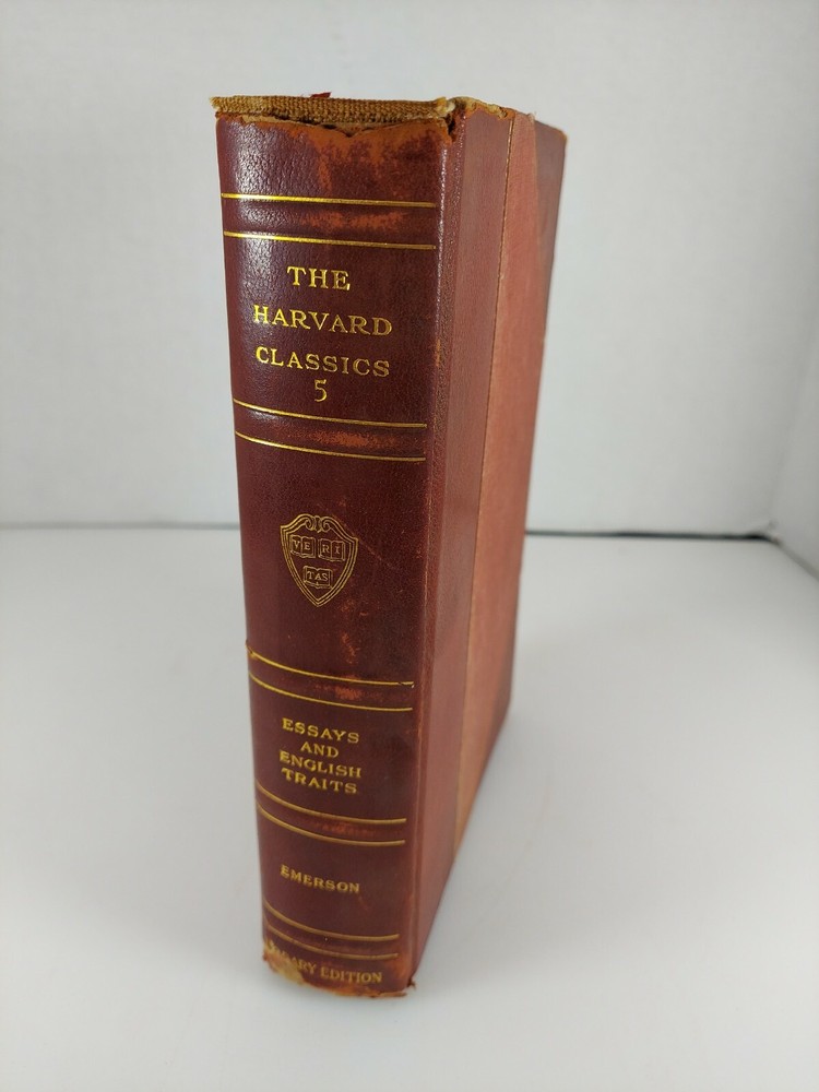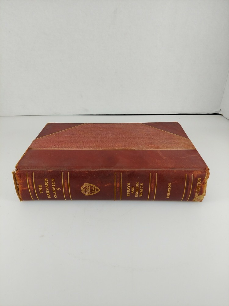 Harvard Classics 5 Essays and English Traits Library Ed 1909 PF Collier Set #363. Condition is Acceptable with cover wear, flaking of leather and light tanning of pages as shown. Shipped with USPS Media Mail