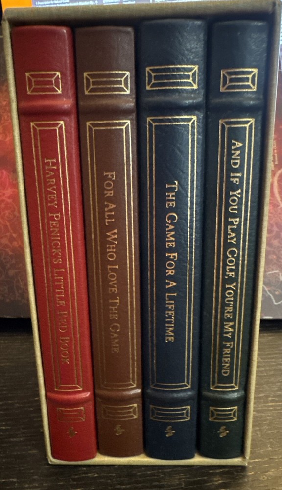 Experience the timeless wisdom of golf legends Harvey Penick and Bud Shrake with the "Game of Golf 4 Volume Box Set." This collector's edition by Easton Press delivers an exquisite leather-bound ensemble that’s as durable as it is luxurious. Immerse yourself in the rich prose that articulates the intricacies of the sport, making it a must-have for enthusiasts and collectors alike. Each volume is steeped in the language of the green, offering insights that sharpen your swing and refine your game. Whether you're adding to your library or seeking a gift for a golf aficionado, this set promises to be a treasured addition, encapsulating the spirit of sports and recreation with an air of elegance.