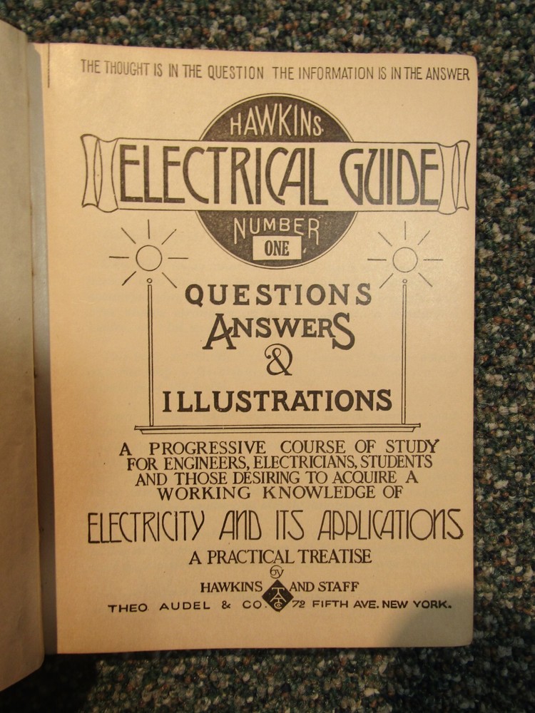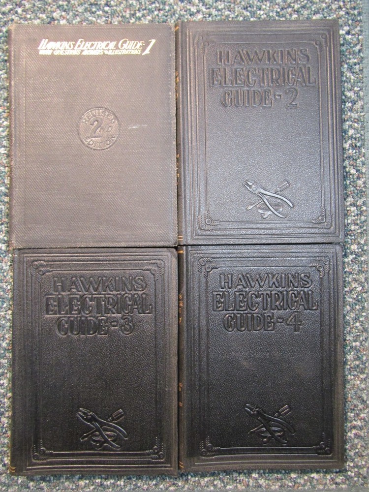 Hawkins Electrical Guide ~ Set of 10 volumes with Guilded Edges ~ 1917, 1927 Here for your consideration is a nice set of Hawkins Electrical Guide books . Volume 1 is from 1917 and is embossed on front cover with revised 2nd Edition, the other 9 volumes are labeled inside "1927 Impression" and are embossed on the front cover with pliers, a screwdriver and tape. All have Gold-Guilded Edges. Included: Volume 1: Electricity, Magnetism, Induction, Experiments, Dynamos, Armature Windings ~ 1917 Volume 2: Management of Dynamos, Motors, Instruments, Testing ~ 1927 Volume 3: Wiring and Distribution Systems, Storage Batteries ~ 1927 Volume 4: Alternating Currents, Alternators ~ 1927 Volume 5: AC Motors, Transformers, Converters, Rectifiers ~ 1927 Volume 6: AC Switch Boards, Circuit Breakers, Measuring Instruments ~1927 Volume 7: AC Wiring, Power Stations, Telephone Work ~ 1927 Volume 8: Telegraph, Wireless, Bells, Lighting ~1927 Volume 9: Railways, Motion Pictures, Automobiles, Ignition ~ 1927 Volume 10: Modern Applications of Electricity, Reference, Index I n good shape and all there. Binding is good. Normal wear and tear. P ictures tell the rest of the story and are part of the cosmetic description . WYSIWYG Please ask any questions before you bid to avoid any communication problems or disappointments. Your purchase will be carefully packed and promptly shipped to your confirmed eBay address. Why Buy From Elderly Electronics: We are experienced sellers on eBay since 1999. Please check our feedback and eBay rating. Items shipped within 24 hours of sale and usually same day if order received by 2 pm CST. We don't mess around. 30-day money back guarantee from the time you receive your item(s) so you may check them out. Positive feedback left for you once payment is received as you have done your part. I will strive for positive five-star feedback from you by describing the item accurately, packing item so it will arrive safely and then sending you the tracking information when the item ships all of which we will do. Thank you for your time while visiting our auctions