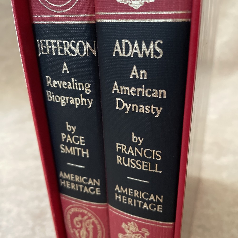Heritage Press Adams: An American Dynasty by Francis Russell and Jefferson: A Revealing Biography by Page Smith - 2 volume boxed set This books are in near mint condition with only light corner wear from being slid into the slipcase. The slipcase is in excellent condition with a light scratch on one side. Please see photos. We try to describe as accurately as possible so you will be satisfied with your purchase. We have more books from this set on eBay and we would be happy to combine on shipping to save you money. All books are sent with insurance via USPS Media Mail.