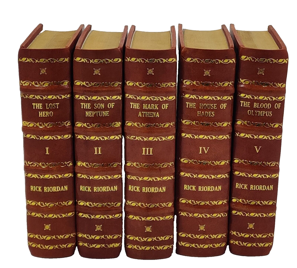 Note: This is not a reprint. The original paperback or hardcover edition has been purchased directly from the authorized distributor or publisher. The book purchased has been carefully bound in genuine leather to enhance its durability and extend its shelf life. Please be assured that no content or pages have been altered or reformatted during the leather binding process. Product Information: - Title of Product: Heroes of Olympus Paperback Boxed Set, The-10th Anniversary Edition [With Poster] [Royal Edition] Author: Riordan, Rick Number of Pages: 3088 Publication Year: 2019 Language: English Book Synopsis: - All five books in the #1 New York Times bestselling Heroes of Olympus saga by Rick Riordan in a paperback boxed set of heroic proportions.From The Lost Hero to the Blood of Olympus, this collection of Rick Riordan's mega-bestselling series will be a go-to gift for readers who have finished the Percy Jackson and the Olympians books. Told from multiple points of view, Percy Jackson's adventures continue and escalate as he teams up with Greek and Roman demigods to stop Gaea the earth mother from destroying the world.Combines Greek and Roman mythology with modern-day characters kids will relate to and root for.Enjoyed the world over by readers ages 8-80.The hefty package also includes a free poster of the Prophecy of Seven. The accessible and dramatic cover and poster art by graphic novelist Nilah Magruder will attract a new generation of fans. Product Description: This exquisite book is crafted exclusively for discerning readers and collectors who seek to elevate and preserve their literary treasures. Bound in GENUINE LEATHER, it showcases the finest craftsmanship with luxurious GOLDEN LEAF DETAILING adorning the spine, front cover, and back cover. The elegance is further enhanced by EDGE GILDING, giving the book an opulent finish. Customize Your Leather-Bound Edition with Color Options: - 1. Select from a wide array of leather colors at no additional cost. Share your preferred leather color with us via email. 2. Choose from a diverse range of leather colors with colored marbles (endpaper), including Brown, Crimson Red, Forest Green, Royal Blue, Rich Black, Hot Pink, Yellow, And Tan . 3. For a truly unique touch, request Multi-Color Labels to complement your custom leather-bound book spine. 4. Own a timeless masterpiece that adds sophistication to any collection! Artisan Quality and Dispatch Information: - ● We appreciate your understanding that these Leather-Bound Books are meticulously crafted works of art, requiring significant time and attention to detail to achieve their exceptional quality. ● Our standard handling time for dispatch is 35 business days, as each book undergoes various stages of production. However, we do accommodate special & requests for specific occasions. ● We offer additional customization options upon request, subject to extra charges. Additionally, we handle both printing and leather binding for all books. ● Product Disclaimer : Please note that as Leather is a Natural Material, minor variations in color or texture may occur.