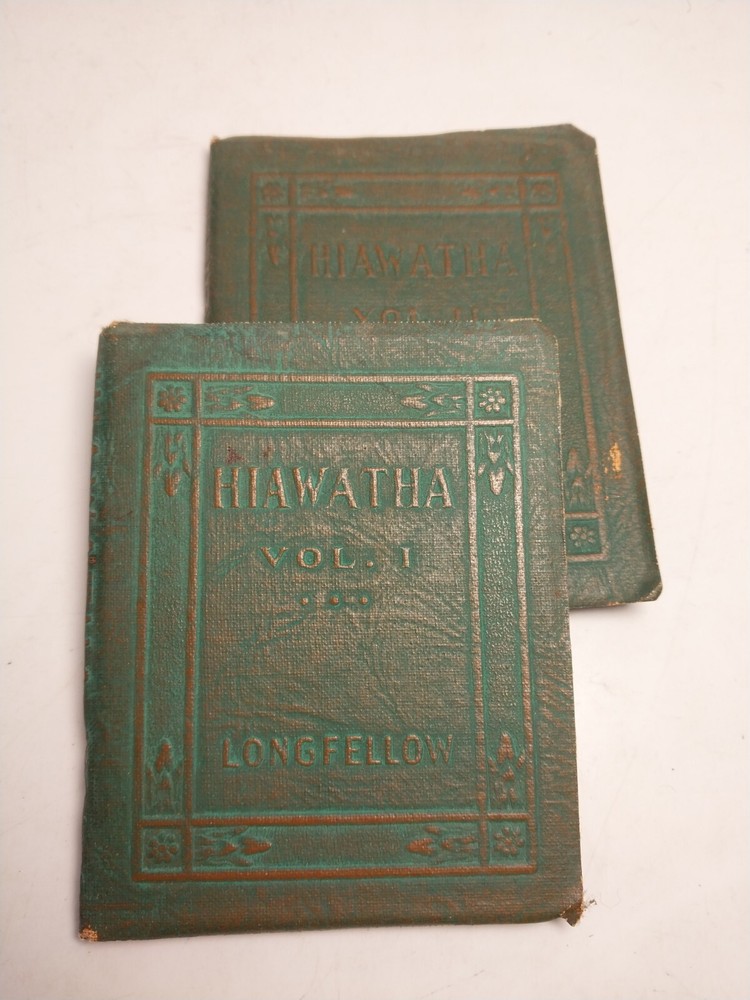 Hiawatha Vol 1&2 Longfellow Little Leather Library Redcroft Miniature Book Set Book set measures approximately 3" x 4" and is in good used condition with some signs of age, use, and wear; age related toning to pages, please see photographs for condition details.