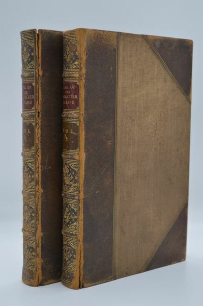 eBay template Th right Joyous and Pleasant History of the Feats, Gests, and Prowesses of the Chevalier Bayard, the Good Knight without Fear and without Reproach (First English Editon) by Loyal Servant John Murray London, 1825. Hardcover. Complete 2 Volume Set. A Very Good, brown cloth boards and half leather binding with gilt lettering and gilt ornate design on spine, 5 raised hubs and 6 compartments, AEG with moderate blemishes, handling and rub marks to boards, rubbed leather along board/spine edges and joints, small abrasions to board corners, small split bottom front joint Volume 1 and front joint Volume 2 mostly split, cracked front hinge Volume 2, starting and fragile hinges overall, some age spotting throughout, leather is dry. In a very good and overall clean and unmarked antiquarian condition. 8vo[octavo or approx. 6 x 9 inches], (Vol.1) 294pp., (Vol.2) 286pp., notes. We pack securely and ship daily with delivery confirmation on every book. Please Note: Depending on site, actual book for sale may differ physically from picture listed. Additional scan(s) are available for any item, please inquire. SKU1034558 SHIPPING: Domestic Media Mail is an additional $5.00. Domestic Priority S&H is an additional $10.00 per item. All domestic orders are moisture protected and shipped in either a well padded box or depending on price/size of book it will be cardboard sleeved & shipped in a well padded bubble envelope. The handling includes Delivery Confirmation on every domestic order which will be emailed upon processing. We always combine on shipping on multiple orders. Foreign shipments are at cost with a dollar handling. PAYMENT: Immediate payment only on this item. RETURNS: All books returnable for a full refund within 30 days after delivery for any reason. A NOTE ON GRADING: Ebay's catalog database can be faulty, please read notes section to clarify particulars on an item, if you have any questions please contact us for more information or pictures. We grade Fine, Near Fine, Very Good, Good, Fair. Any faults are always noted including remainder marks, price clipped dust jackets, and previous owner markings. If not noted then they do not exist on this book. © 1998 - 2023 Lavendier Books. All rights reserved.