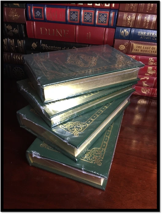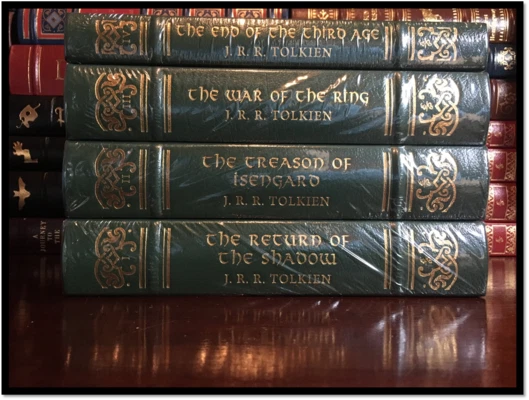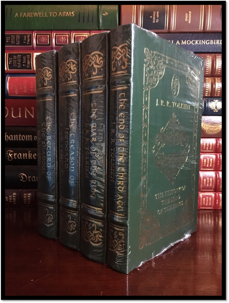 History Of The Lord Of The Rings This is a new in shrink-wrap 4 volume Easton Press leather-bound hardback set of History of the Lord of the Rings by Christopher Tolkien. In all fantasy literature, there is no more completely formed world than J.R.R. Tolkien’s Middle-earth. This sweeping work, assembled by Christopher Tolkien from his father’s detailed notes, unpublished passages and early drafts, takes fans behind the scenes of Tolkien’s masterpiece to its very beginnings. J.R.R. Tolkien’s THE LORD OF THE RINGS, now firmly acknowledged as one of the most popular books of the twentieth century, has captivated generations of readers with its completely convincing fantasy. In The History of The Lord of the Rings, the author’s son and literary heir, Christopher Tolkien, examines the creation of that epic from its inception to its finished form. At the core of these books are many early drafts and unpublished passages by Tolkien, which add greatly to a thorough understanding of his masterpiece. Combining his father’s unique vision with his own privileged insight and editorial commentary, Christopher Tolkien’s THE HISTORY OF THE LORD OF THE RINGS is a set of four volumes that no fan of THE LORD OF THE RINGS can afford to overlook. I ship via media mail within the U.S. If you would like an expedited option please let me know before buying. I ship globally, but I use the U.S. service which I ship to in Kentucky and it ships out to the Country and uses their services. Also, if you are an international buyer and would like to combine shipping and the add to cart and request total option is not working please contact me about creating you a listing. Paypal and Ebay checkout preferred, each allow you to use credit cards and some even offer payment plans. Thanks!