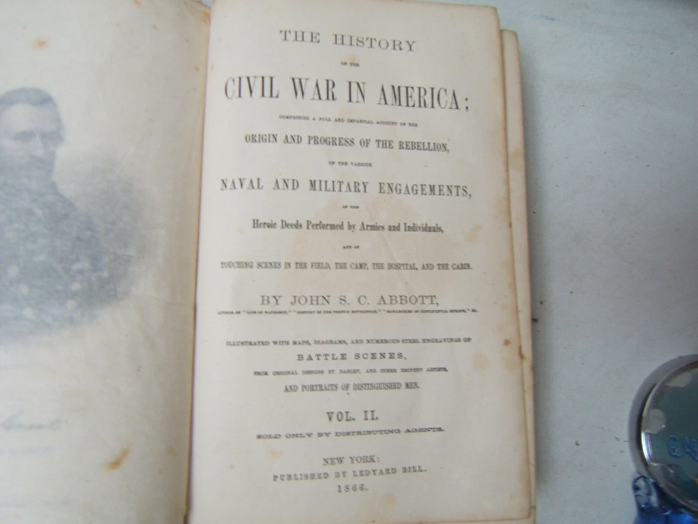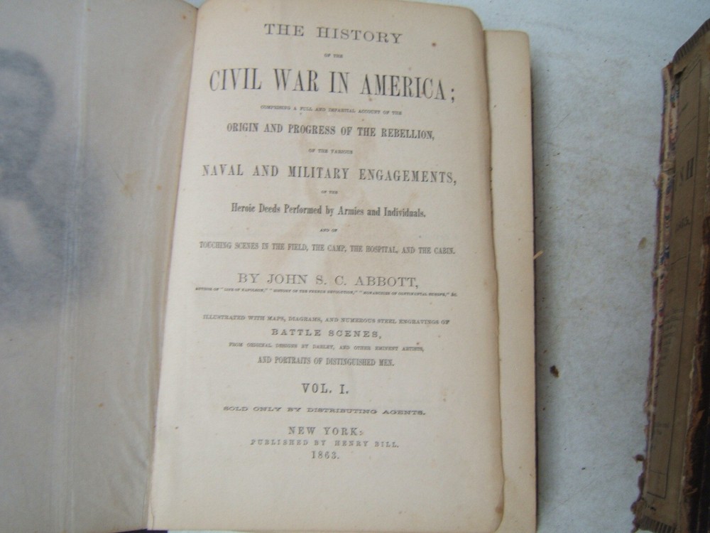 History of Civil War 2 Volume Set John S C Abbott 1863 1866 Henry Bill, Publ History of Civil War 2 Volume Set John S C Abbott 1863 1866 Henry Bill, Publ Click images to enlarge Description ? History of Civil War 2 Volume Set John S C Abbott, author 1863 1866 Henry Bill, Publisher Illustrated. Leather binding. Clean pages. Covers are fair to poor. Vol. I covers are attached but hinges are split and weakened. Vol. II is missing spine and covers are detached. Civil War Books Payment Paypal Shipping Domestic shipping: Fixed Shipping Charges. International shipping: Weight based Shipping Charges. International Carriers are: Usps Priority Intl Shipping Carrier Domestic International Shipping Locations Usps Book Rate $0.00 - - I will ship to: United States, Worldwide Weight: 6 lbs. 8 oz. Shipping and Handling: Please check eBay's Shipping & Payment tab Thank you for visiting the Juniata General Store. We are located in the heart of Central Pennsylvania just up the road from the beautiful Juniata River. We offer a wide variety of merchandise, both new and vintage. Most of our inventory is one of a kind items and we add new items constantly so check back often. Vendio Images: More than just a pretty image. 250+ Mobile Responsive & Active Content Free Listing Templates with Vendio Sales Manager. Vendio provides powerful selling automation for sellers of all sizes. Get business information that counts! - Vendio Counters are active content free.