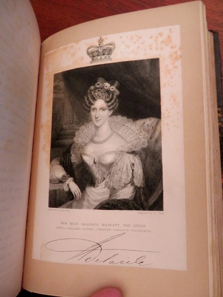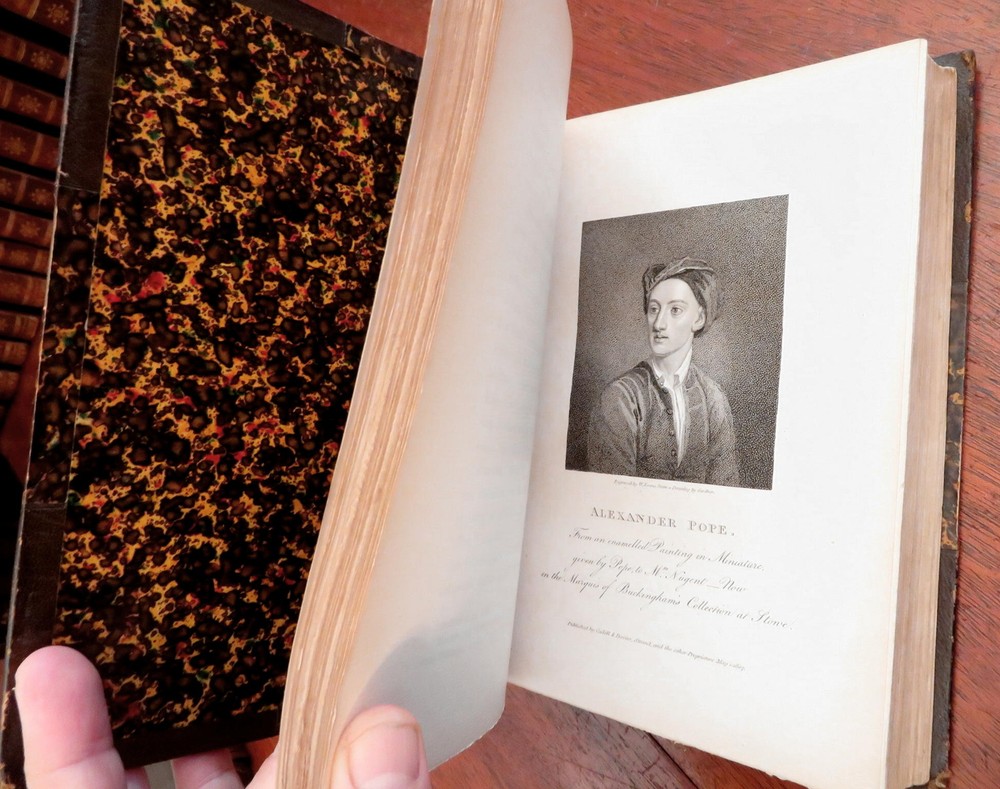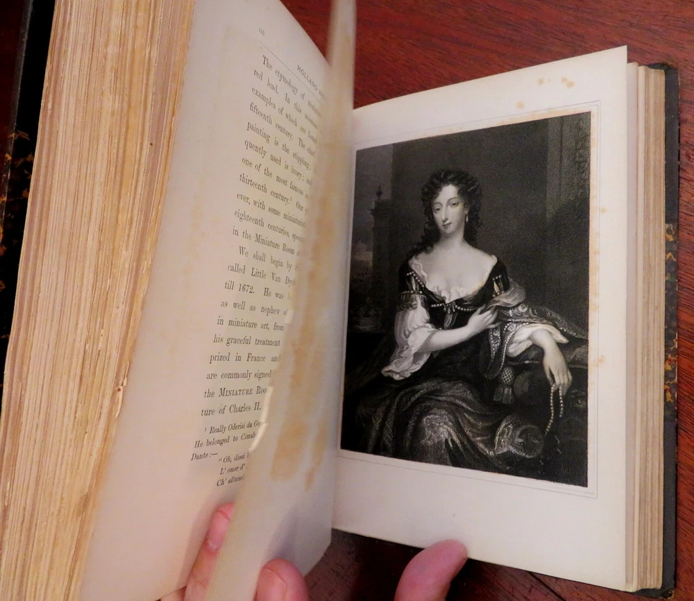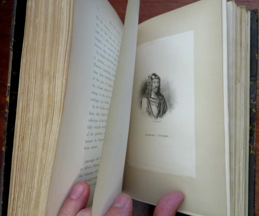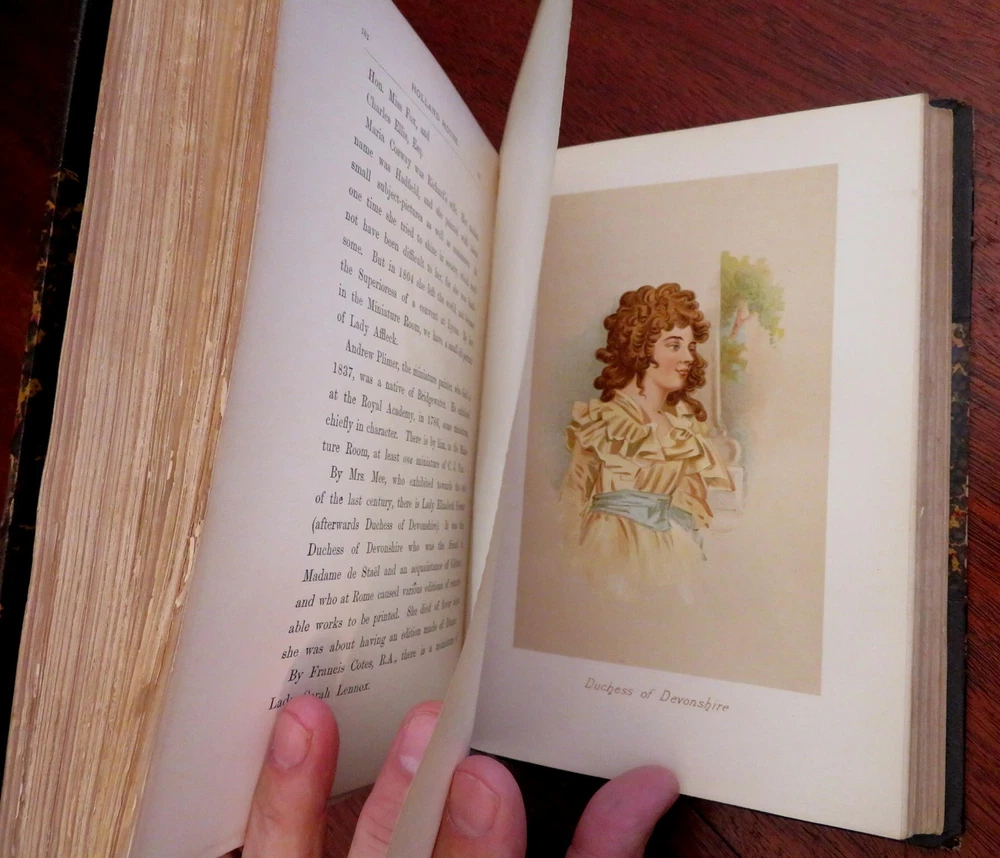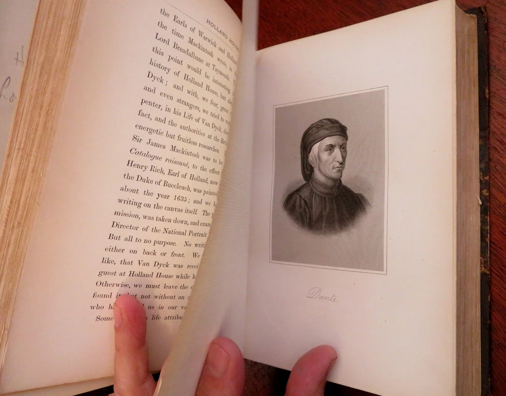 Holland House 1874 Extra-illustrated w/ 97 plates Tout leather 2 v. set Holland House 1874 Extra-illustrated w/ 97 plates Tout leather 2 v. set (Old Books, 19th Century Books, Leather Books, Decorative Leather Sets, Illustrated Books, Portraits). Holland House, by Princess Marie Liechtenstein. Published 1874, London by MacMillan and Co. 2 volumes. 289, 255 pages. Text in English. Profusely illustrated throughout. EXTRA-ILLUSTRATED w/ 97 extra plates inserted by the binder- most engraved, several color lithographed. Mostly portraits of prominent historical people. Attractive antiquarian 1/2 leather bindings [stamped by TOUT], raised & gilt bands, gilt title lettering & compartment decorations, marbled covers. Set is physically old and shows some signs of handling and time. Bindings gently age worn but still appealing, leather and joints scuffed with surface cracking but still supple, front covers slightly weakened, set remains overall very attractive as an object. A profusion of plates throughout, many of historical interest and value independent of the books they've been bound into. Set was "grangerized" by an early owner which was the fashion at the time. Text block paper is gently age toned as typical, internally set remains mostly clean, tight and sound. A set which has been taken care of but may/ does not look like new. Still attractive on the shelf. Set displays a pleasing and unique age patina and is in rather nice antiquarian condition, any age flaws seem easy to overlook or forgive. Please review photos for more detailed attempt to present this nice set as it survives. We often over-describe any flaws that many sellers would not even bother to mention since most people would overlook them as minor and unworthy of comment. Many people tell us the books they receive from us are nicer in person than they appears on the screen. We want you to be clear about what you are buying, so we take numerous photos and try to describe it openly and honestly. Books Measure c. 9" H x 6 1/2" W. [B7759].