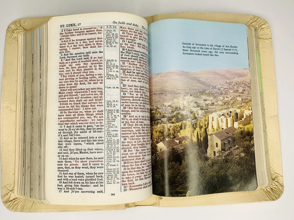 Holy Bible Light of the World Edition 1966 Illustrated King James Version KJV This 1966 “Light of the World” Edition Holy Bible features the classic King James Version (KJV) text with beautifully illustrated pages , making it a timeless piece for collectors and readers alike. Its vintage design and reverent presentation reflect the era’s craftsmanship, offering both spiritual value and historical charm. Perfect for Bible collectors , KJV enthusiasts , or anyone seeking a beautiful display Bible with historical significance. Please see photos carefully. Why Choose Us: Fast Shipping: Shipped within 1 business day of receiving payment. Customer Satisfaction: We have a 100% positive feedback rating. Check our reviews to see why customers love buying from us! Money-Back Guarantee: If you're not satisfied with your purchase, we offer a 30-day money-back guarantee. Shipping and Handling: Low cost shipping World-Wide. Questions: If you have any questions about this item, please feel free to send us a message. We respond to inquiries promptly and are happy to provide any additional information you may need. _____________________________ This Old Bookhouse Fall In Love With Words From The Past Learn More About This Store! __________________________________ 🤍