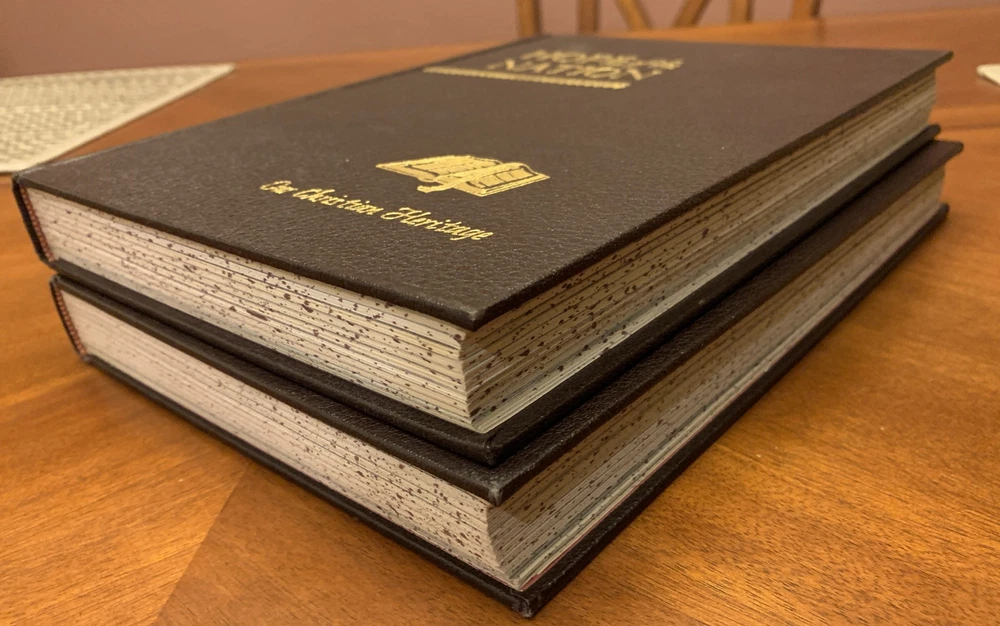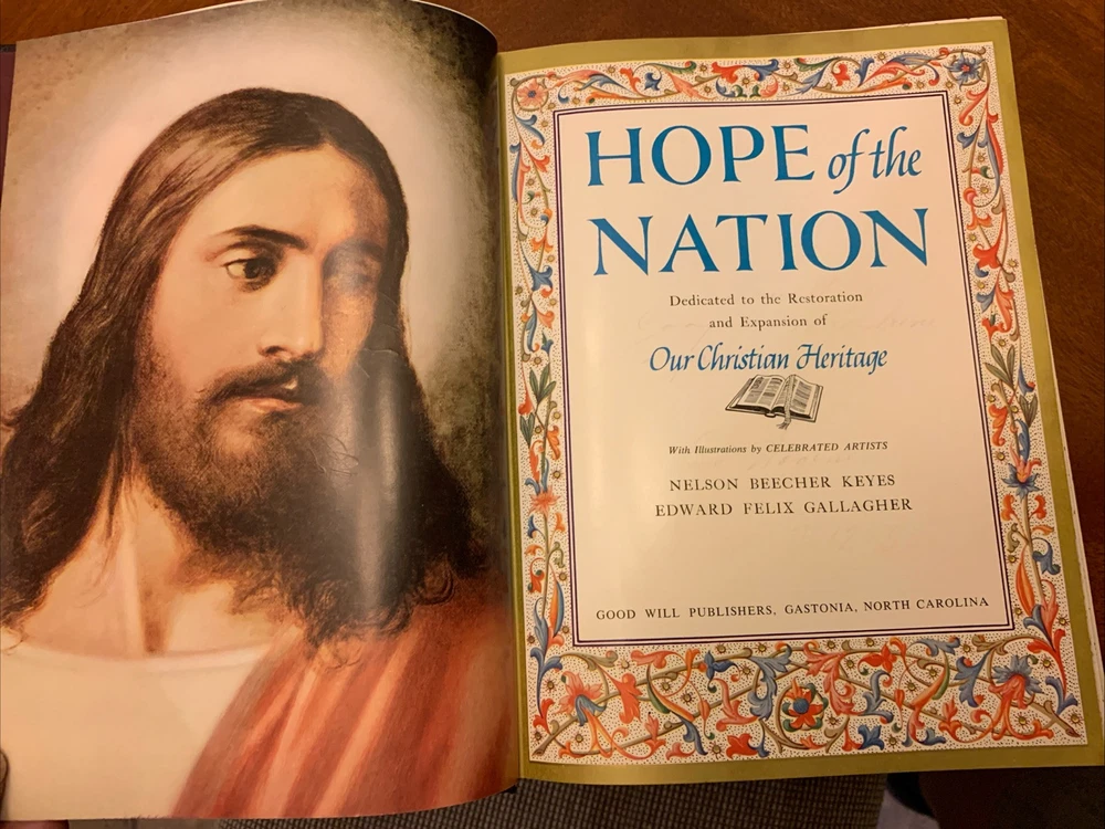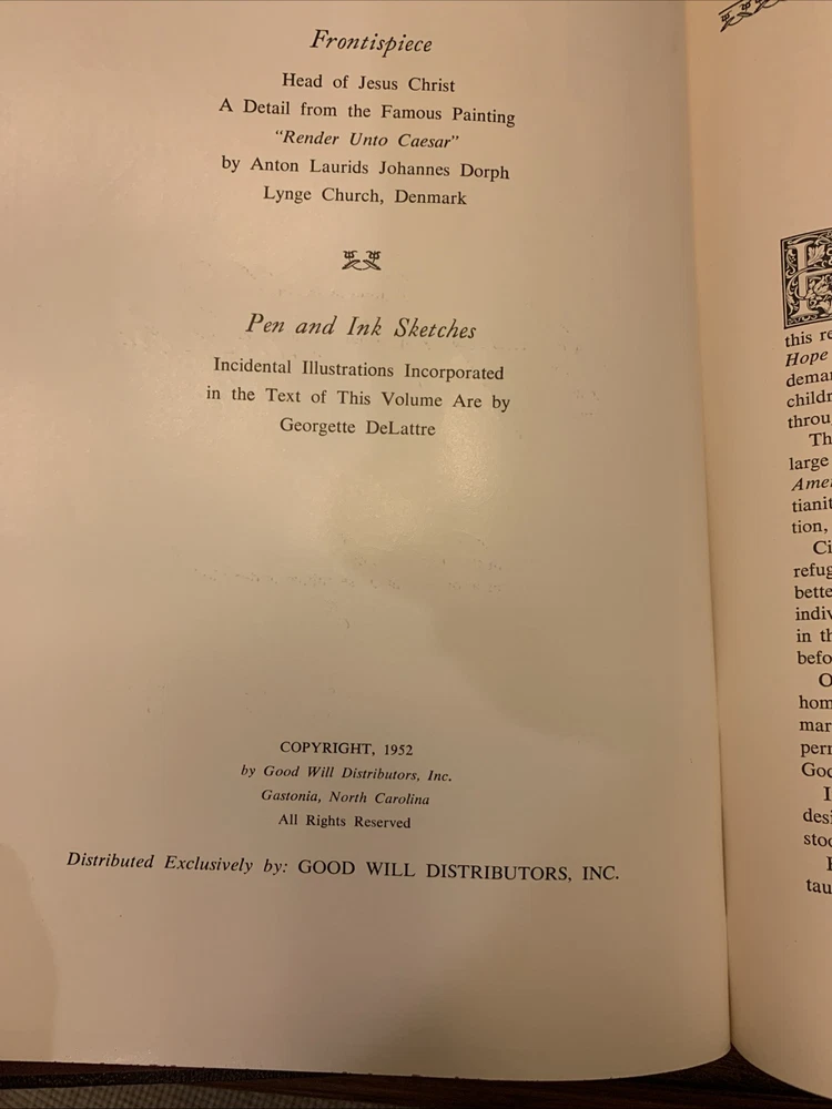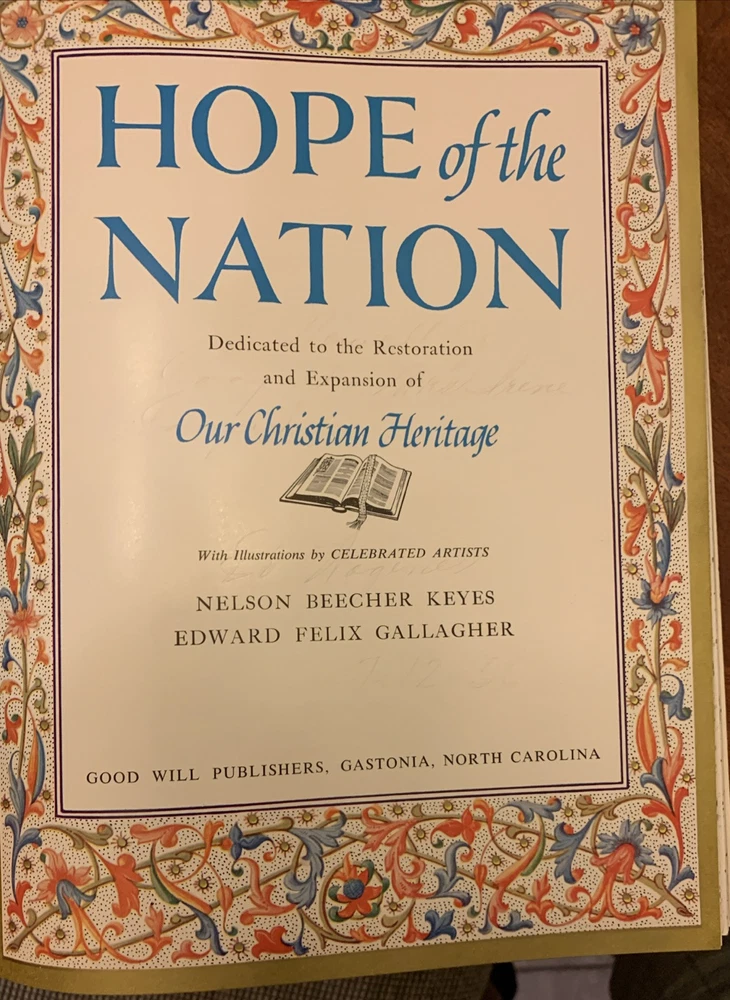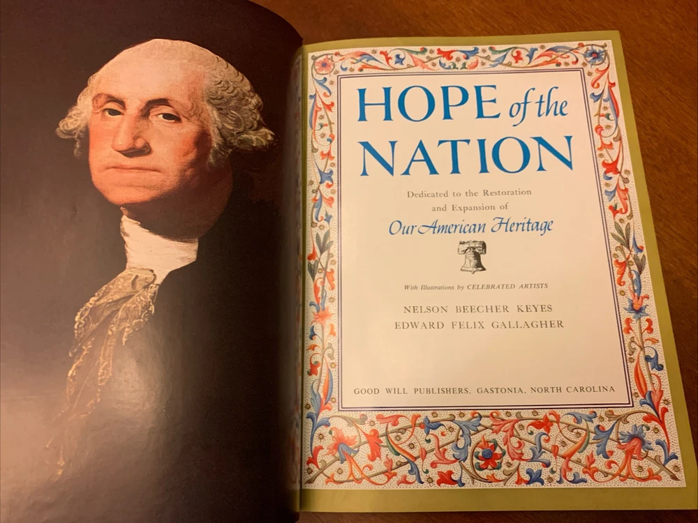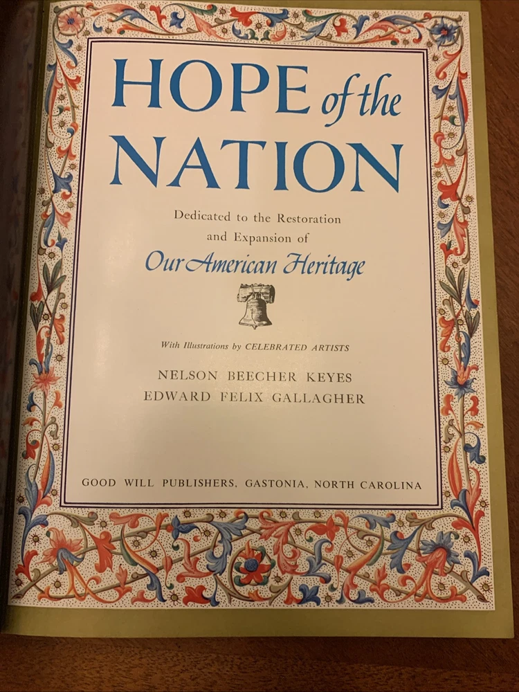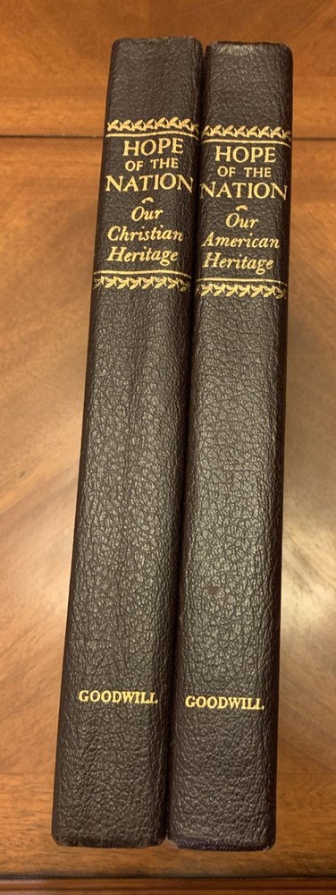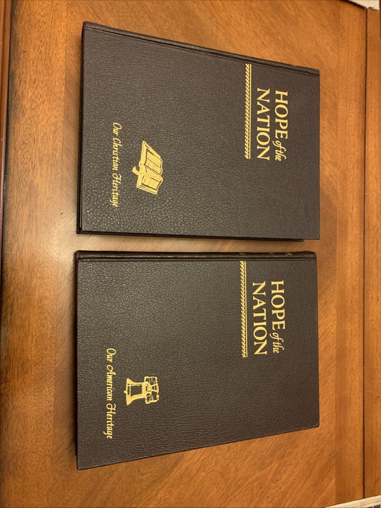 This leather-bound set titled "Hope of The Nation: Our Christian Heritage” & “Our American Heritage” is a luxurious and limited collector's edition from Good Will Publishers. Published in the United States in 1952, the set includes Americana-themed books written by authors Nelson Beecher Keyes and Edward Felix Gallagher. The books are illustrated by various artists and are part of a special edition set that celebrates Christian and American heritage, making it a valuable addition to any collection or home! Preowned but good condition. The Christian Heritage volume has the “A Sacred Token” page completed with the presenters name and to whom it was presented (see photos) while the page is not completed in the American Heritage volume. Both books are actually in good condition with minimal signs of use. FREE SHIPPING! . Thanks for viewing and be sure to visit our eBay store and save us as a favorite seller!