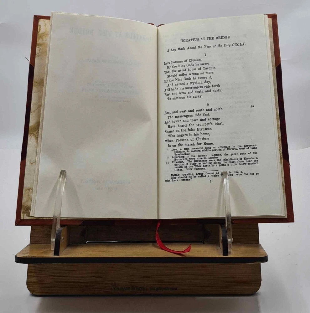 About the Book: Complete Title: Horatius at the bridge 1922 [Leather Bound] Author: Macaulay, Thomas Babington Macaulay, BaronSmith, Lewis Worthington ed Edition: Reprinted by Gyan Books in 2021 with the help of original edition published long back [1922] . Language: English No. Of Pages: 36 Binding: HALF LEATHER binding features a leather spine and corners with the remaining cover in Raxine or Marble Paper. CHOOSE ANY LEATHER COLOR OF YOUR CHOICE WITHOUT ANY EXTRA CHARGES JUST CLICK ON IMAGES FOR OPTIONAL COLORS AND INFORM US YOUR CHOICE THROUGH MAIL WITH COLOR CODE. Customization Options Available Upon Request We provide 'Extra customization*' on request with additional charges. Please note that customization charges are applied in addition to the listed item (Book) price. Customization Extra Charges Sample Image FULL LEATHER BOUND WITH GILDED EDGES (ANY COLOR) USD 35 MULTI-COLOR LABELS (Spine) USD 12 PERSONALIZED IMAGE EMBOSSING ON THE FRONT COVER USD 40 FOLIO EDITION (12x18.5 inches) BIGGER SIZE Six times of the given price Points to note before booking order: SPECIAL DISCOUNT FOR BULK ORDERS PLEASE CONTACT US. UNIQUE LEATHER-BOUND Edition on Spine and Corners along with Golden Leaf Printing on Round Spine. This book is: Printed in Black & White (If a color edition is available you may request it by mail for a nominal charge.) Sewed binding for longer life Printed on high quality Natural Shade Acid Free Paper Professionally processed without changing its content Genuine Leather is being used for Binding Handcrafted Golden Leaf Printing. Round Spine Handmade Marble paper use for end paper Raise bands Bookmark Ribbon As these are old books each page is processed manually to make them readable. But in case some pages are blur or missing or have black spots the same are re-printed as it is to keep the authenticity of the book. In case of multi volume sets please note that the above listing is for a single volume only. (To order multiple volumes please contact us separately). We request you to understand that these leather-bound books are work of art and hence require time to go through different process to be the masterpieces that they are. We usually take 20 business days as handling time to dispatch shipment. We consider special request for a special occasion. Craftsman based in India prepared this book and shipped from different stock locations around the Globe. PRODUCT DISCLAIMER: Please be aware that because leather is a natural material slight discoloration or change in texture may be visible. ABOUT US GYAN BOOKS INTRODUCING A REMARKABLE LEATHER-BOUND EDITION, METICULOUSLY CRAFTED BY THE ESTEEMED INSTITUTION: RARE BIBLIO A UNIQUE LEATHER-BOUND BOOK FOR ELITE READERS/COLLECTORS OF OLD RARE AND BESTSELLING BOOKS. An ORIGINAL LEATHER is being used for Binding this Book on SPINE AND CORNERS along with GOLDEN LEAF PRINTING {Half Leather}. We deal into reprinting of the masterpieces crafted by authors around the world. We are proud to say that we have a collection of over 25 million books and our collection includes books that are as old as 200 years and hence are considered as RARE BOOKS. We are pioneer in this field having experience of 40 years. We also undertake printing and Leather Binding jobs of other books. Thesis printing and Leather Binding is one of our important services. Many publishers and authors approach us for their books to bind in our unique leather binding format for their special customers. Our craftsmen are active in this job since generations. Restoration of old books is our expertise. We are known by our Customization options. We have many leather color options in our bucket. The whole process is done manually so that it gives you the same feeling of old book.