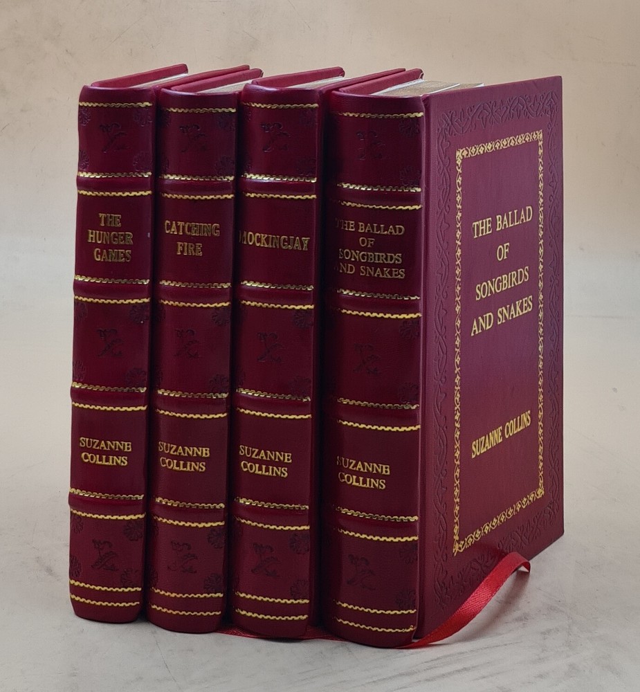 Gyan Books INTRODUCING A REMARKABLE LEATHER-BOUND EDITION, METICULOUSLY CRAFTED BY THE ESTEEMED INSTITUTION "RARE BIBLIO". This title holds the distinction of being a Bestseller, highly praised by readers across the GLOBE. We are thrilled to present this literary gem exclusively to our elite readers, meticulously encased in our one-of-a-kind premium leather binding. Following your order we purchase the book from the original publisher/distributor and embark on the process of rebinding to elevate this book to a luxurious reading style. For the Binding, we use AUTHENTIC LEATHER, graced with opulent GOLDEN LEAF DETAILING on the SPINE, FRONT COVER, AND BACK COVER, ADDED BY EDGE GILDING. ABOUT US ? Our expertise lies in the reissuing of timeless masterpieces penned by authors from around the world. ? We take immense pride in curating a collection that spans over 25 million books, encompassing literary treasures dating back as far as 200 years, thus earning the distinguished title of "Rare Books." LEATHER COLOUR OPTION: - We offer a diverse range of LEATHER COLORS, including RED, GREEN, BLUE, BLACK, MAGENTA, YELLOW, TAN. We also offer multi-color labels with these beautiful books on special request. SELECT YOUR PREFERRED LEATHER COLOR AT NO ADDITIONAL COST . Simply provide the image code in the remarks field when placing your order. Points to note before placing order: In case of multi volume sets, please note that the above listing is for a single volume only. (To order multiple volumes, please contact us separately). We urge you to appreciate that our Leather-Bound Books are Genuine works of art and are Handcrafted by our Professional Craftsmen. Thus, requiring time and care to reach the pinnacle of excellence. We Prepare the Book after receiving the Order. We usually take 30 business days as handling time to dispatch shipment. About the Book (Details)- Complete Title: Hunger Games 4-Book Hardcover Box Set (the Hunger Games, Catching Fire, Mockingjay, the Ballad of Songbirds and Snakes) [PREMIUM LEATHER BOUND] Author:-Collins, Suzanne Language:English No. of Pages:1712 Year: 2020 About the Book:-This beautiful hardcover box set includes all three books in Suzanne Collins's internationally bestselling Hunger Games trilogy together with The Ballad of Songbirds and Snakes.In the ruins of a place once known as North America lies the nation of Panem, a shining Capitol surrounded by twelve outlying districts. The Capitol keeps the districts in line by forcing them all to send one boy and one girl between the ages of twelve and eighteen to participate in the annual Hunger Games, a fight to the death on live TV...And the odds are against all who play. With all four of Suzanne Collins's Hunger Games novels in one box set, you can step into the world of Panem with the 10th annual Hunger Games, and continue all the way to the electrifying conclusion. We provide Extra customization* on request with additional charges. We also undertake printing and Leather Binding of all the books. PRODUCT DISCLAIMER: Please be aware that because leather is a natural material, slight discoloration or change in texture may be visible.