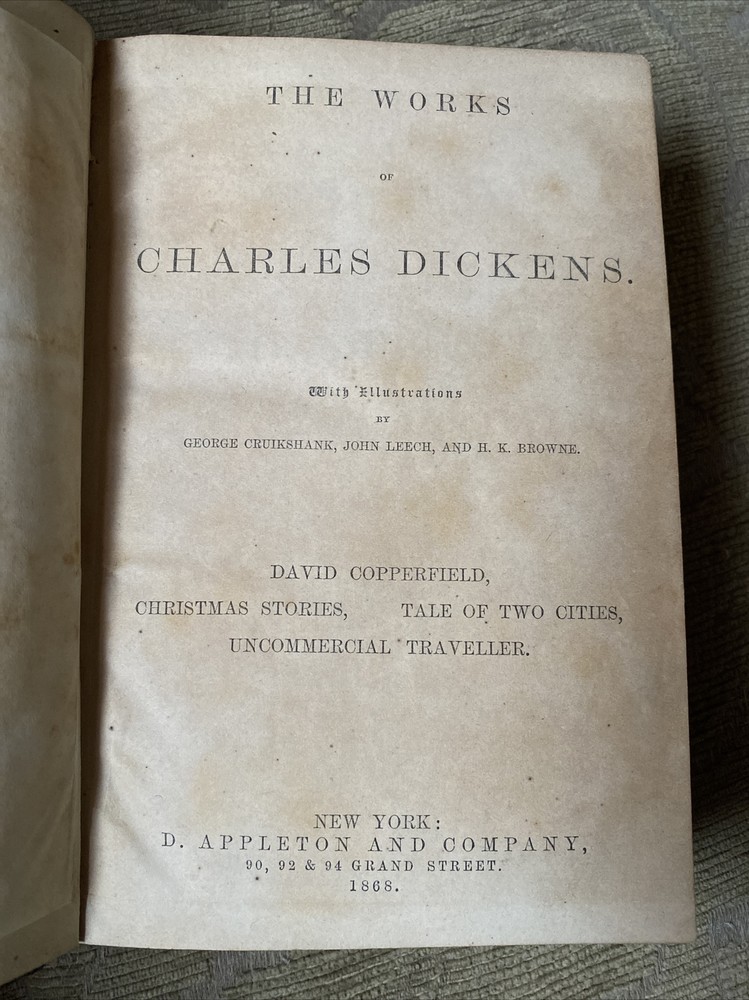 THE WORKS OF CHARLES DICKENS 6 VOLUME NOVEL SET RARE ANTIQUE BOOKS Including… PICKWICK NICKLEBY OLIVER TWIST EXPECTATIONS... Just to name a few! Gilted Leather covers Gorgeous books to add to your library! Please see all picturesPayment is due within 3 days of sale
