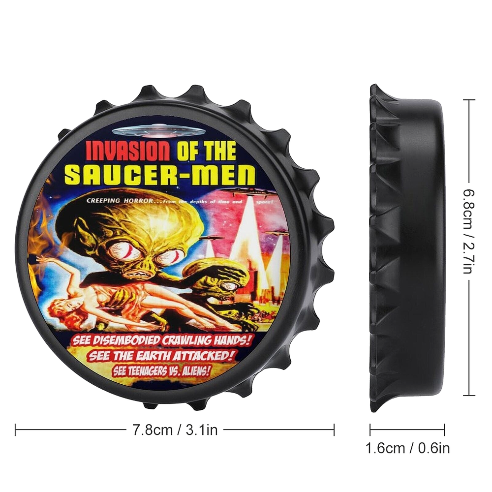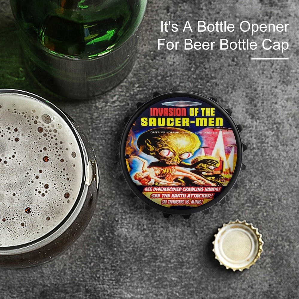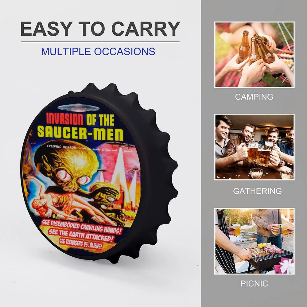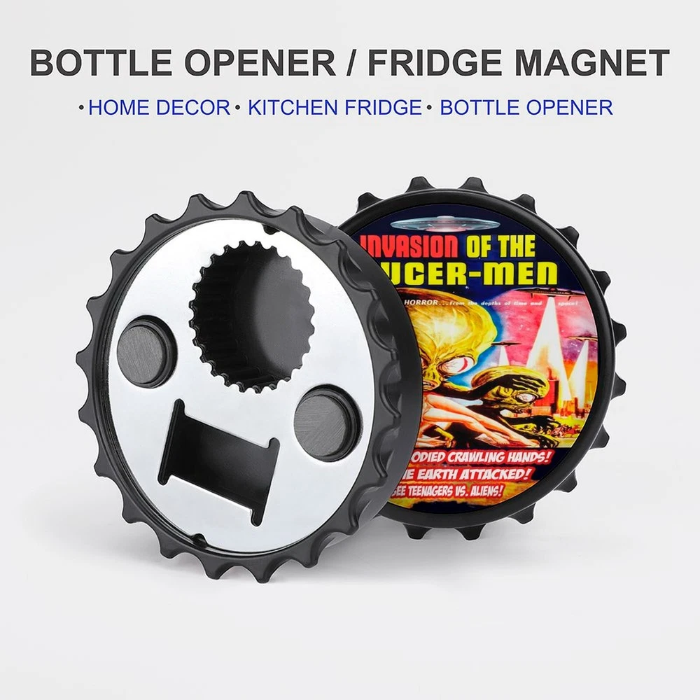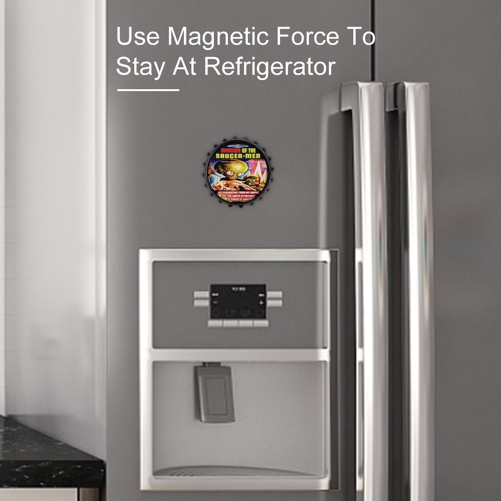 Refrigerator Magnet and Bottle Opener with Colorful Images Made of tough durable plastic with a magnet Used as a bottle opener, coaster, beer cap catcher, jar, fridge magnet, or cup mat. Creative cap design easily opens bottles. The magnet on the back firmly adheres to iron surfaces. Won't scratch the surface of your fridge, and the magnet is not easy to fall off. 3.1 inches * .062 inches Delivery takes 12 - 14 (sometimes sooner) days as we manufacture in real-time. It’s worth the wait because they look completely amazing