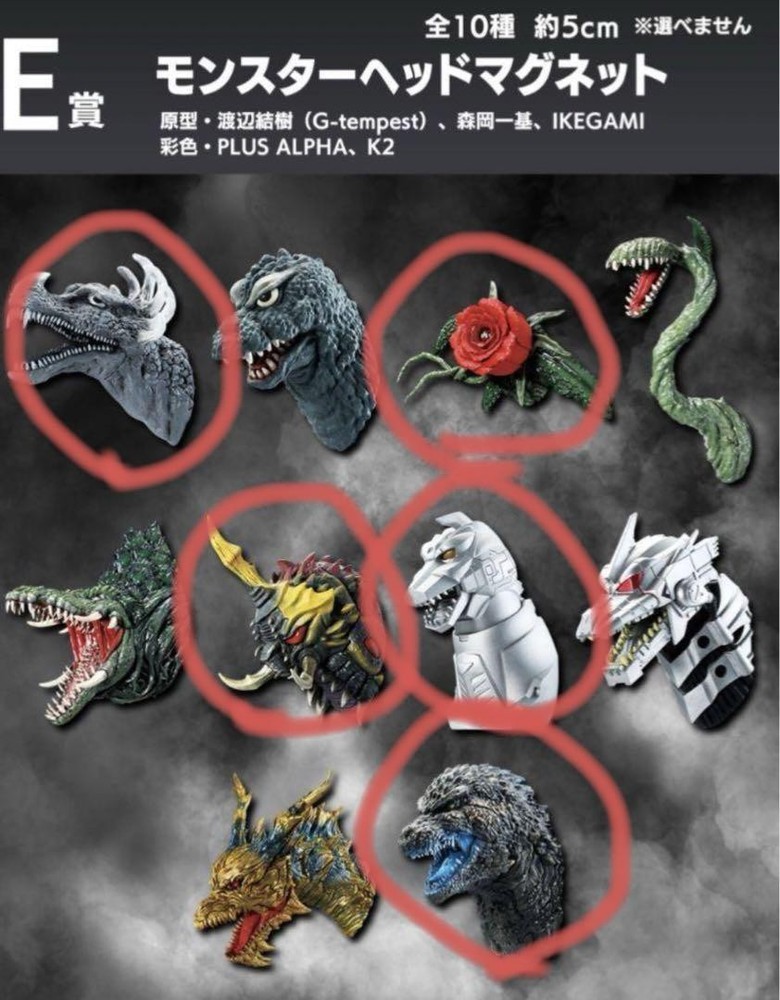 Ichibankuji Godzilla 70th E-Prize 5-Piece Monster Head Magnet Collectible Set