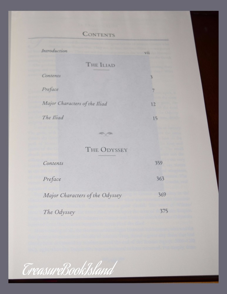 " A book is a dream that you hold in your hand" - Neil Gaiman This is a brand new leather-bound collectible edition of The Iliad and Odyssey by Homer The Iliad and The Odyssey are two of the oldest works of Western literature—yet these ancient myths still offer powerful lessons for our times. From the fascinating fall of Troy to Odysseus's perilous journey home, from the gods and goddesses to the Sirens and the suitors, the events and characters of these epic tales captivate us, teach us, and inspire us. Their influence can be seen far and wide, from James Joyce's Ulysses to the movie sensation Troy, starring Brad Pitt. Whether you've read Homer's original stories or you've only enjoyed their modern-day descendants, you'll love this Canterbury Classics edition of Iliad and Odyssey. The perfect book to complete any bookshelf, Iliad and Odyssey features an eye-catching leather-bound cover with gold foil stamping, as well as fine ivory paper with gilded edges. You'll be moved by these magical works, and then delight in displaying this beautiful book in your home. A classic keepsake for fans of Greek mythology, as well as all great literature, Iliad and Odysseyis the perfect addition to any library. Shipping I offer a free shipping within USA. Your book may be shipped with USPS/UPS/Laser Ship. If you ordered couple books they may arrive in couple shipments. I usually start working on the orders as soon as i receive the order, except weekends and Holidays. If you need to cancel your order you need to do it as soon as possible. BUT if you have received a msg from me that it is processing I cannot cancel the order because the label has been paid and the book is in transit. Thank you for understanding. I will update the customer with tracking number within 48 Hours. International Shipping No additional import charges at delivery will be imposed if the item is shipped through the eBay's Global Shipping Program which includes international tracking. If the item is shipped through other than the eBay's Global Shipping Program buyers in certain countries are responsible for the import charges at delivery. These are not included in the shipping cost. Returns I offer 14 days return policy. Buyer need to contact me pririor. All items must be in original condition and buyer pays return shipping and 15% restocking fee. If there is something wrong with the item or it was damaged in shipping process buyer needs to send me pictures of the damage and we will start return/ exchange process from there. Thank you Contact us If there any questions or concerns please let us know. Please contact me throught Ebay msg, i do not reply to the personal emails Track Page Views With Auctiva's FREE Counter