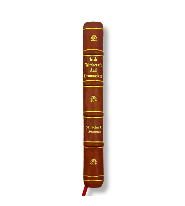 About the Book: Complete Title: Irish witchcraft and demonology 1913 [Leather Bound] Author: Seymour, St. John D. (St. John Drelincourt) Edition: Reprinted by Gyan Books in 2021 with the help of original edition published long back [1913] . Language: English No. Of Pages: 268 Binding: HALF LEATHER binding features a leather spine and corners with the remaining cover in Raxine or Marble Paper. CHOOSE ANY LEATHER COLOR OF YOUR CHOICE WITHOUT ANY EXTRA CHARGES JUST CLICK ON IMAGES FOR OPTIONAL COLORS AND INFORM US YOUR CHOICE THROUGH MAIL WITH COLOR CODE. Customization Options Available Upon Request We provide 'Extra customization*' on request with additional charges. Please note that customization charges are applied in addition to the listed item (Book) price. Customization Extra Charges Sample Image FULL LEATHER BOUND WITH GILDED EDGES (ANY COLOR) USD 35 MULTI-COLOR LABELS (Spine) USD 12 PERSONALIZED IMAGE EMBOSSING ON THE FRONT COVER USD 40 FOLIO EDITION (12x18.5 inches) BIGGER SIZE Six times of the given price Points to note before booking order: SPECIAL DISCOUNT FOR BULK ORDERS PLEASE CONTACT US. UNIQUE LEATHER-BOUND Edition on Spine and Corners along with Golden Leaf Printing on Round Spine. This book is: Printed in Black & White (If a color edition is available you may request it by mail for a nominal charge.) Sewed binding for longer life Printed on high quality Natural Shade Acid Free Paper Professionally processed without changing its content Genuine Leather is being used for Binding Handcrafted Golden Leaf Printing. Round Spine Handmade Marble paper use for end paper Raise bands Bookmark Ribbon As these are old books each page is processed manually to make them readable. But in case some pages are blur or missing or have black spots the same are re-printed as it is to keep the authenticity of the book. In case of multi volume sets please note that the above listing is for a single volume only. (To order multiple volumes please contact us separately). We request you to understand that these leather-bound books are work of art and hence require time to go through different process to be the masterpieces that they are. We usually take 20 business days as handling time to dispatch shipment. We consider special request for a special occasion. Craftsman based in India prepared this book and shipped from different stock locations around the Globe. PRODUCT DISCLAIMER: Please be aware that because leather is a natural material slight discoloration or change in texture may be visible. ABOUT US GYAN BOOKS INTRODUCING A REMARKABLE LEATHER-BOUND EDITION, METICULOUSLY CRAFTED BY THE ESTEEMED INSTITUTION: RARE BIBLIO A UNIQUE LEATHER-BOUND BOOK FOR ELITE READERS/COLLECTORS OF OLD RARE AND BESTSELLING BOOKS. An ORIGINAL LEATHER is being used for Binding this Book on SPINE AND CORNERS along with GOLDEN LEAF PRINTING {Half Leather}. We deal into reprinting of the masterpieces crafted by authors around the world. We are proud to say that we have a collection of over 25 million books and our collection includes books that are as old as 200 years and hence are considered as RARE BOOKS. We are pioneer in this field having experience of 40 years. We also undertake printing and Leather Binding jobs of other books. Thesis printing and Leather Binding is one of our important services. Many publishers and authors approach us for their books to bind in our unique leather binding format for their special customers. Our craftsmen are active in this job since generations. Restoration of old books is our expertise. We are known by our Customization options. We have many leather color options in our bucket. The whole process is done manually so that it gives you the same feeling of old book.