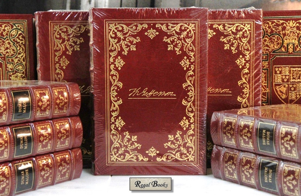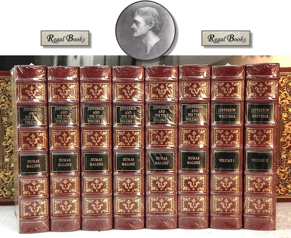 ***Copy of photos, personal formats, graphics, or text is prohibited . Ebay may drop listings with infractions. I review content regularly. Limited Editions Jefferson and His Time + Jefferson Writings Author: Dumas Malone Illustrations by Description: Please note this is the Eight Volume set with 2 volume Writings included, not just the six volume set which was much more common. There is also a cool fold-out map that is in the Writings volume and is not always found with the set because it is loosely laid in, not bound. ***I posted some old photos of illustrations from an open set I sold long ago, but they are not as good as I can do now. I am preparing an open set for listing also and will completely redo the illustrations when I get a chance. Condition: SEALED in original plastic. This set has been exceptionally stored and has no flattening of spines. No smoke or mildew smells. No spotting under the plastic. No darkening of the gilt design on boards. It would be hard to find a better set. This Fine Leather Book Features: Top grade, gold embossed/ornamented leather Gilded page ends to protect against dust and moisture Decorative end papers Acid neutral archival paper to last generations