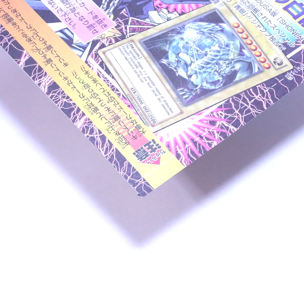 Animation Cel - Transformers Beast Wars II JMP-001 - Blue Eyes White Dragon Description About this item Yu-Gi-Oh (English ver) JMP-001 - Blue Eyes White Dragon Ultra Rare Promo, Magazine Appendix Weekly Shonen Jump (Japanese Magazine) 2003 unopened Detailed Explanation This card is a promotional card that was included as an appendix in the combined 3rd and 4th issue of Weekly Shonen Jump in 2003. Japanese magazines often come with promotional cards as supplements, and this card is one of them. However, this card has a unique charm compared to other appendix cards. The distinctive feature is that it is the English version of the card, simultaneously included in Japan and the United States. "Yu-Gi-Oh!" is a manga serialized in Weekly Shonen Jump, serving as the original work for the card game. In 2002, both Yu-Gi-Oh! and the magazine that serialized it, Shonen Jump, were popular not only in Japan but also worldwide. In response to this, the American company VIZ partnered with Shueisha, the publisher of Shonen Jump, to publish a monthly magazine called "SHONEN JUMP" in the United States, featuring selected popular manga titles. At that time, in celebration of the inaugural issue of "SHONEN JUMP," this card became a magazine supplement. The inaugural issue of SHONEN JUMP in America was at the end of November 2002, while the combined 3rd and 4th issue of Weekly Shonen Jump for March 2003 was released on December 16, 2002. Both of these publications included the English version of the card with the same number, namely "JMP-001 Blue Eyes White Dragon," as a supplement. Considering the history of Yu-Gi-Oh! cards and the history of manga in America, wouldn't you want to get your hands on this valuable card, significant to both? -If you would like to add a photo, please send us an email. Shipping We send all items with a tracking number. You can track the status of your shipment at any time. As for the shipping address, we can only ship to the address you have registered with eBay. If you would like us to send to a different address, please change your address on eBay beforehand. International Buyers - Please Note: Import duties, taxes, and charges are not included in the item price or shipping cost. These charges are the buyer's responsibility. Please check with your country's customs office to determine what these additional costs will be prior to bidding or buying. If the cancellation is due to the buyer, we will charge a fee. Thank you for your understanding.