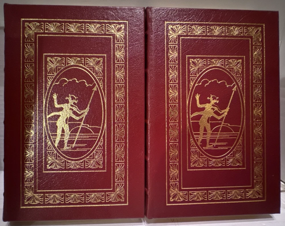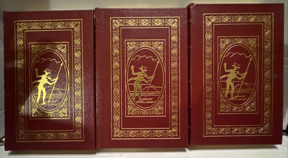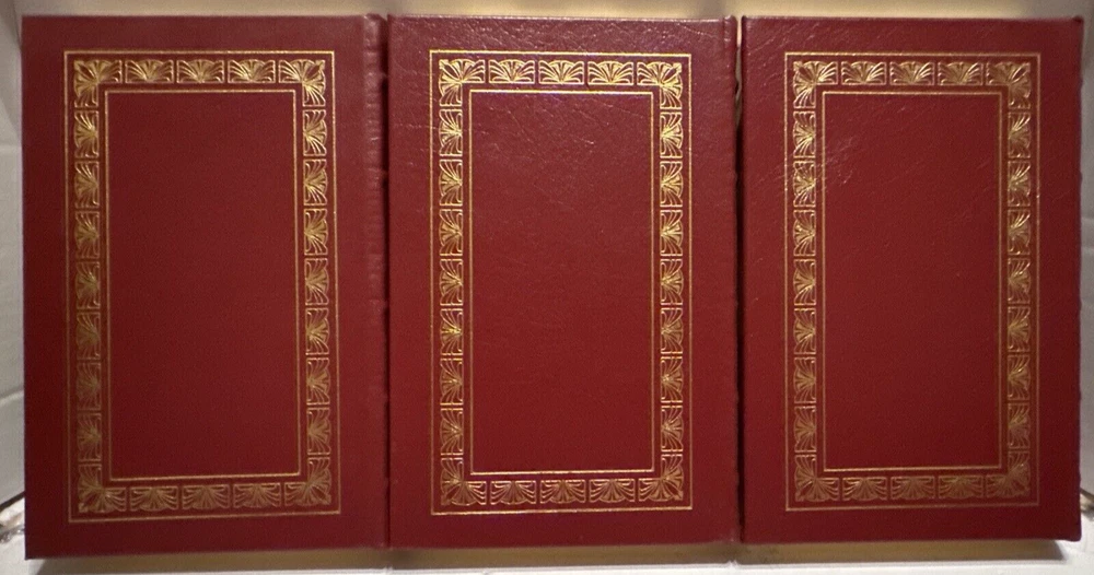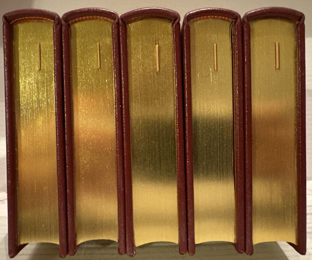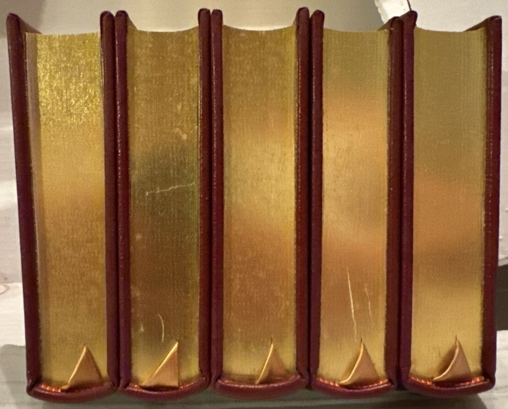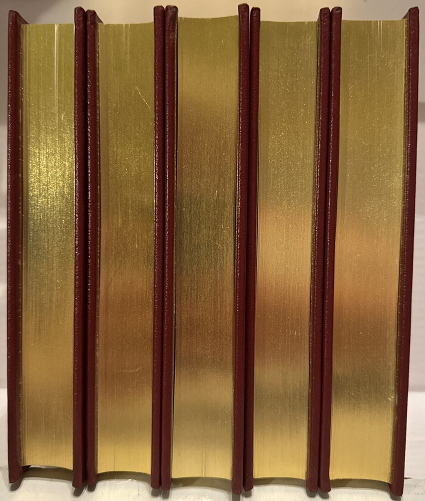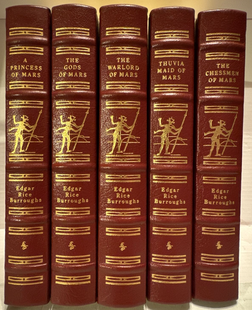 My wife is making me thin down my collection so I will be listing many great books in the next few months. Princess of Mars The Gods of Mars The Chessmen of Mars Thuvia Maid of Mars The Warlord of Mars Burroughs Edgar Rice 5 Book Set bound in Genuine Leather w/ Salmon Ribbon Marker 2004 (Easton Press) Maroon Leather Cover Gold Title / Page ends are gilded in 22-karat gold Books will be packed to arrive as they left. Will Combine Shipping Check out my other items ! Be sure to add me to your favorites list ! Genuine full colored leather with 22KT gold design on hubbed spine, front & back covers. Gilt gold page edges. Lustrous moire silk end pages. Satin ribbon page marker. Thread sewn pages for durability and strength. Printed on acid neutral archival paper. Condition: Books are in great shape with some minor scratches to the gold gilt page edges. I had set sealed in shrink wrap to protect books. See pics. The Easton Press books feature some of the most renowned works of literature in the most beautiful leather-bound editions which will be the cornerstone of your home library or the perfect gift for any book collector.