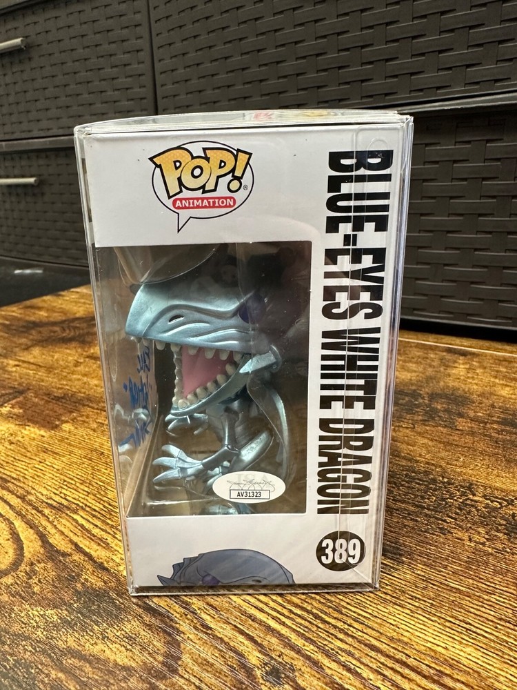 This Funko Pop! Vinyl figure of the Blue-Eyes White Dragon from the Yu-Gi-Oh! Series 1 is a must-have for any anime and manga fan. The figure stands at 3 3/4 inches tall and comes in box number 389 with an autograph authentication number of AV30350. This collectible figure is autographed by Eric Stuart, a renowned voice actor who has worked on several anime and manga projects. The autograph authentication is done by James Spence Authentication (JSA), a trusted name in the collectibles industry. This figure is part of the Pop! Vinyl product line and is perfect for adding to your collection or displaying in your office or home.