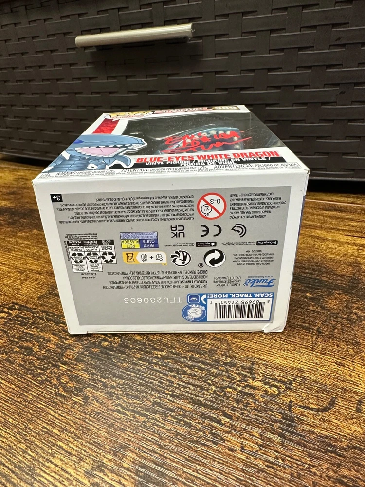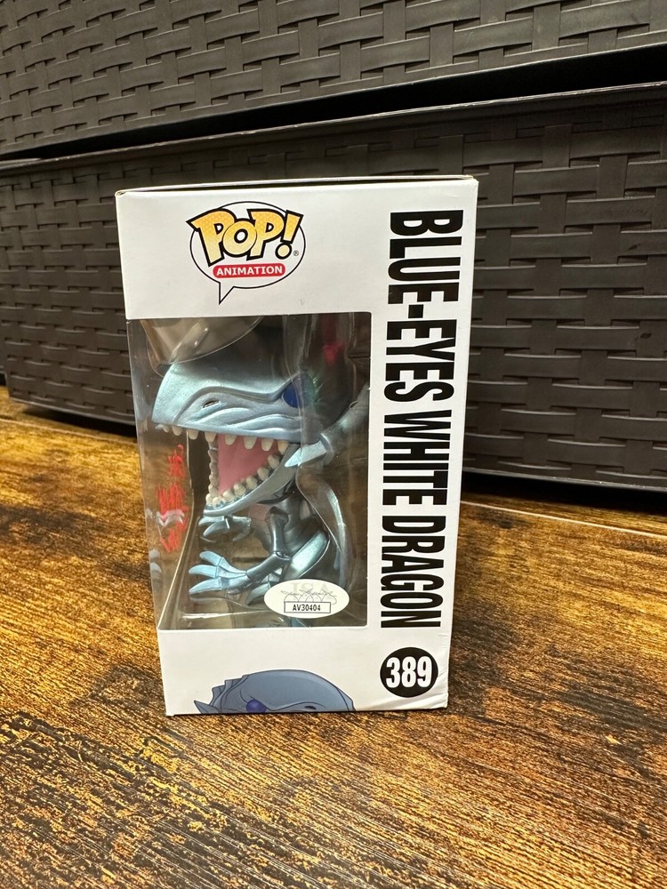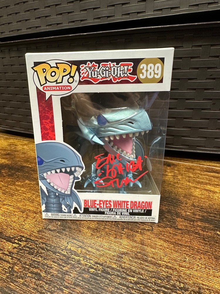Unleash the power of your Yu-Gi-Oh! collection with this exclusive Funko Pop vinyl figure of the iconic Blue-Eyes White Dragon, model 389. Authenticated by James Spence Authentication (JSA), this hard-signed collectible is a must-have for fans and collectors alike, ensuring its authenticity and rarity. Crafted with care, the figure boasts vivid white detailing, capturing the essence of the beloved character. Complete with a protective case, it's a standout piece that deserves a prominent display in any Animation collection. This isn't just a toy; it's a treasure from the Yu-Gi-Oh! universe, signed by the talented voice actor Eric Stuart. Box has some damage please view images for details.